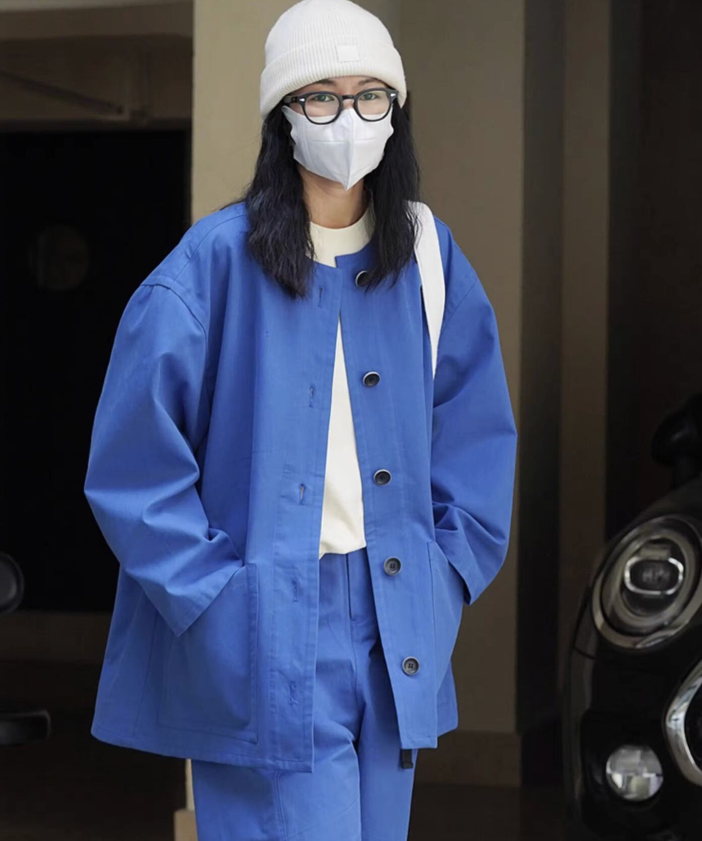 大人カジュアルコーデに大活躍のノーカラージャケットです。