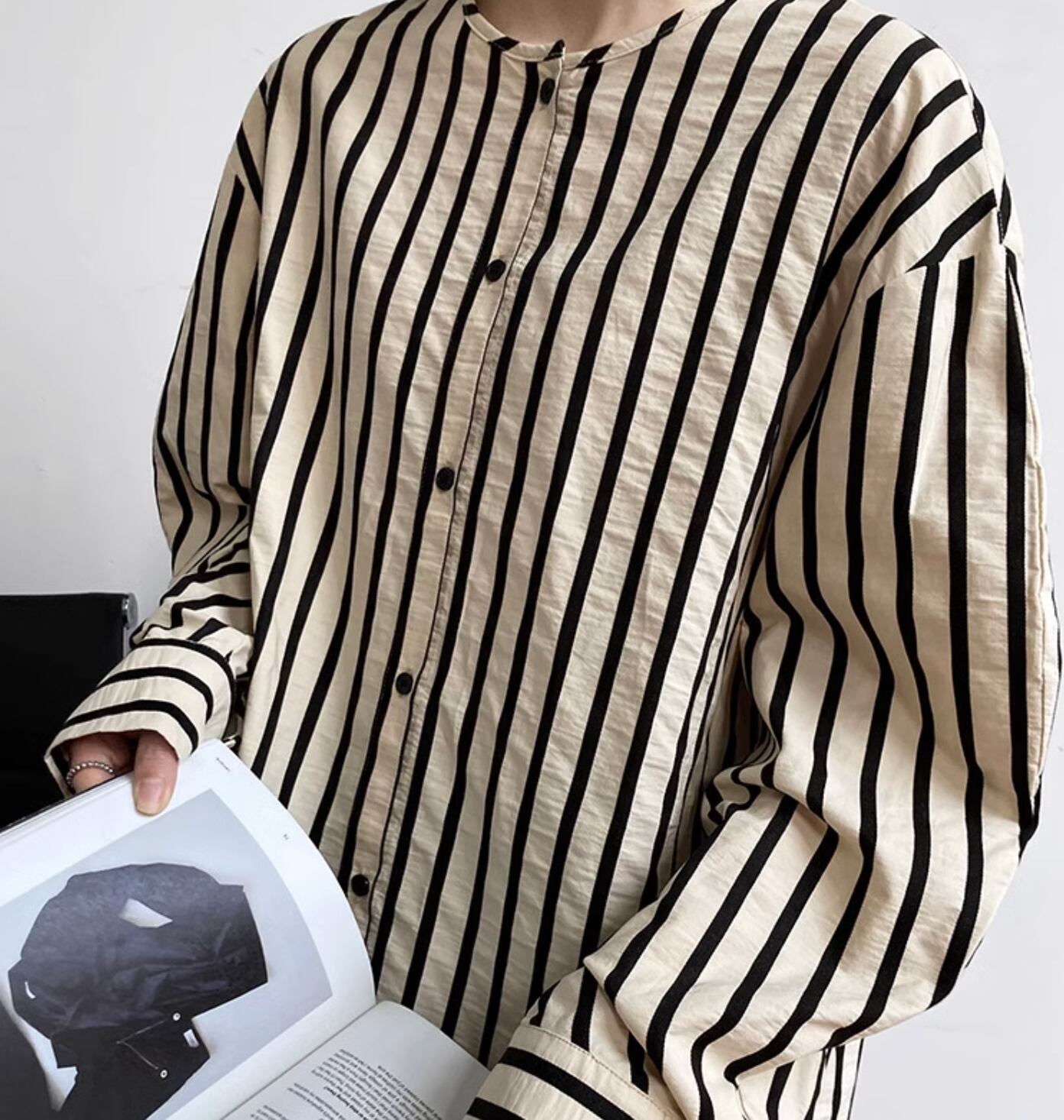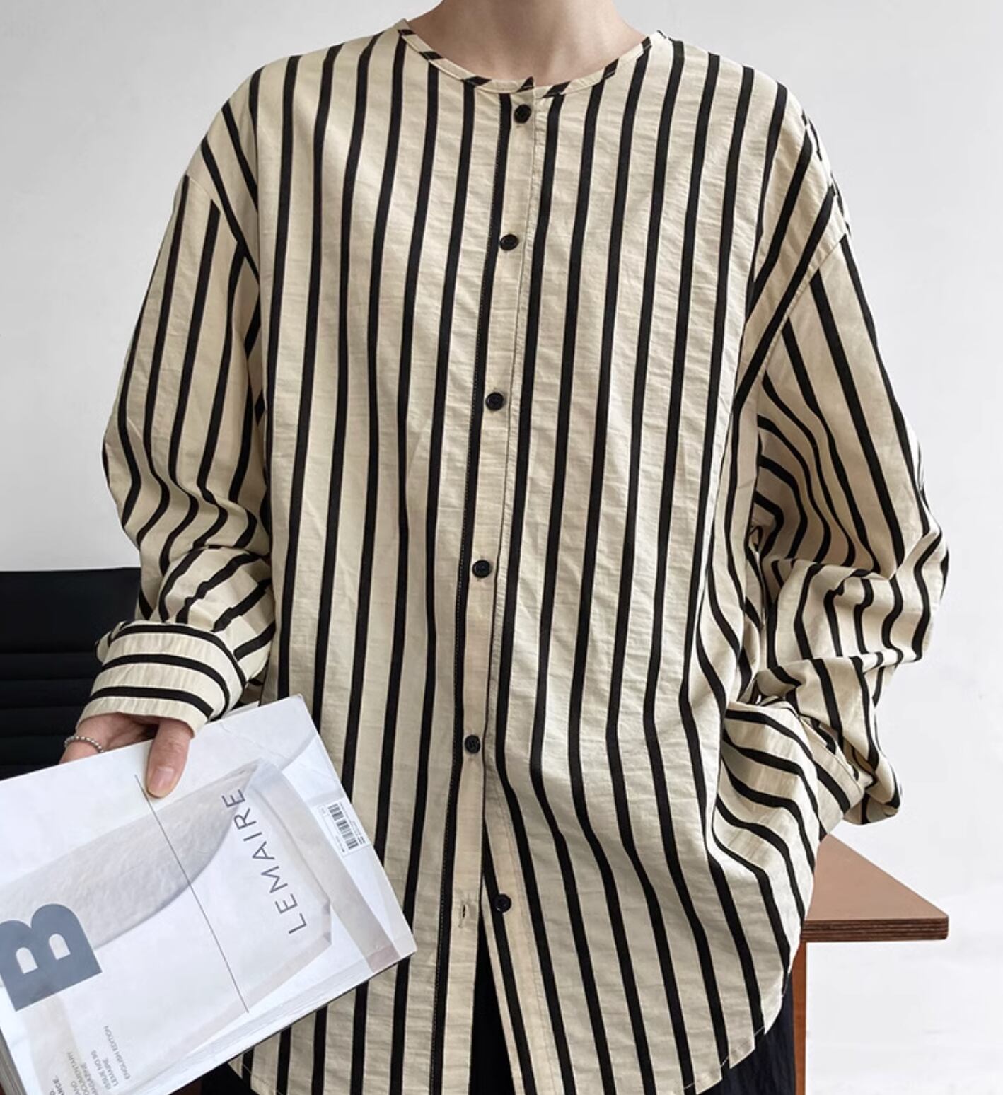 レディース トップス シャツ ブラウス ミディアム ミドル丈 長袖 ボリューム袖 ドルマンスリーブ パフスリーブ ラウンドネック 襟なし ノーカラー ワイド ストレート 前開き ボタン かわいい 大人可愛い きれいめ シンプル カジュアル 上品 おしゃれ レトロ ラフ マニッシュ ルーズ クール 抜け感 クラシカル フェニミン ボーダー ストライプ 春 秋 オフィス ビジネス OL 通勤 学生 学校 通学 お出かけ 休日 ショッピング コーデ 楽ちん 体型カバー 普段使い 着回し M L ゆったり ゆる