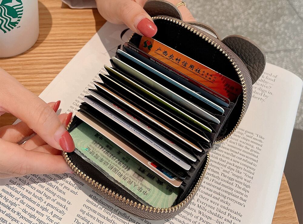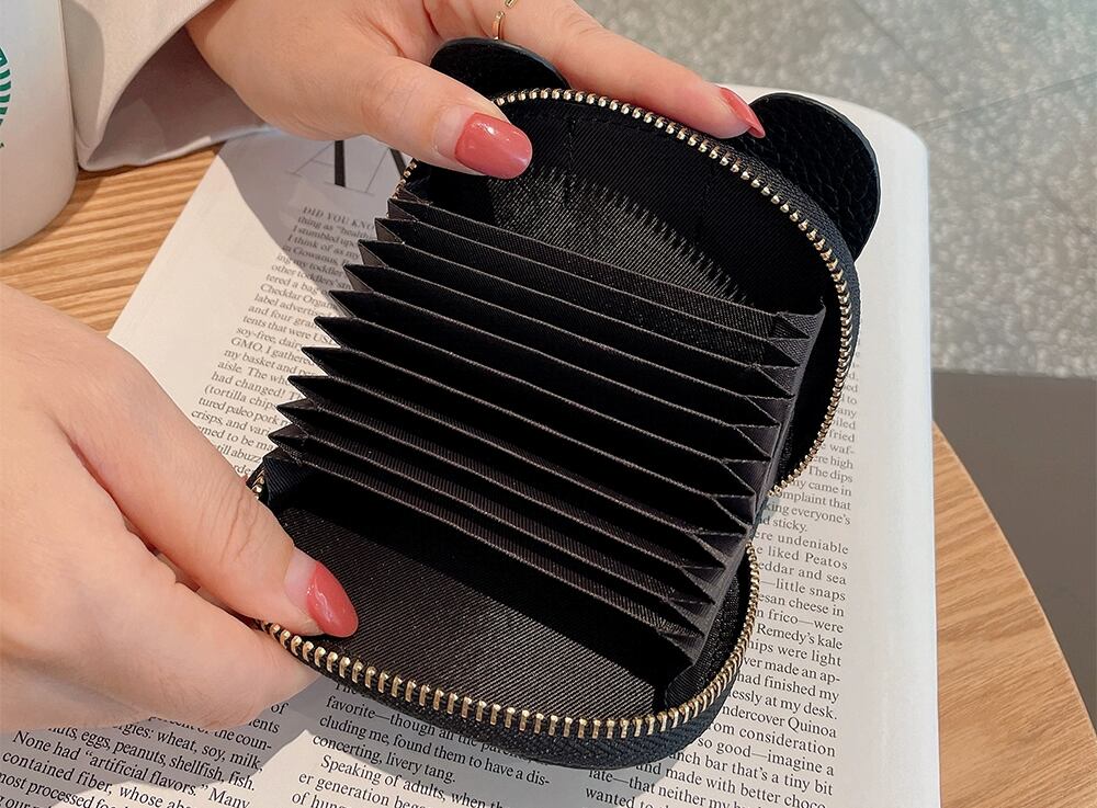 蛇腹式の収納スペースがあり、大容量で数種類のカードを収納できます。