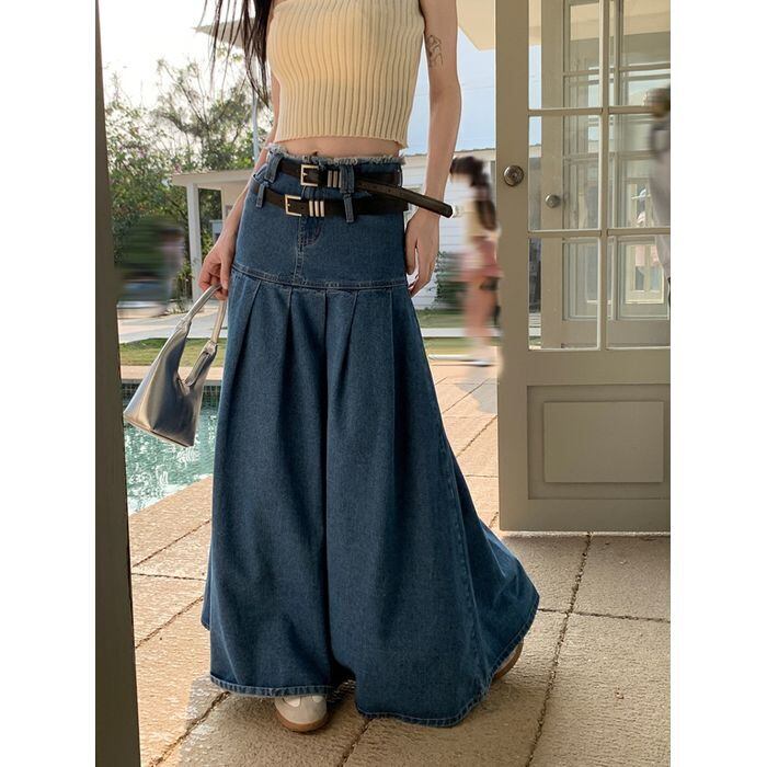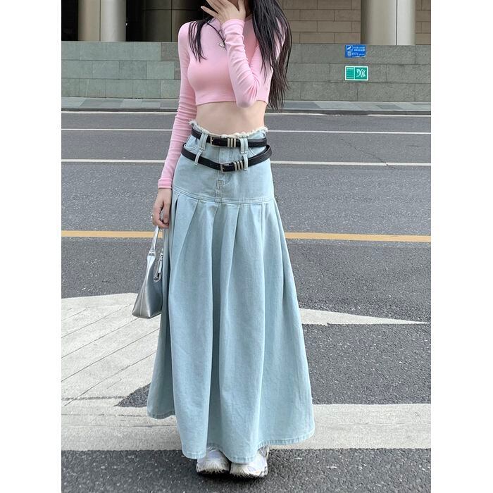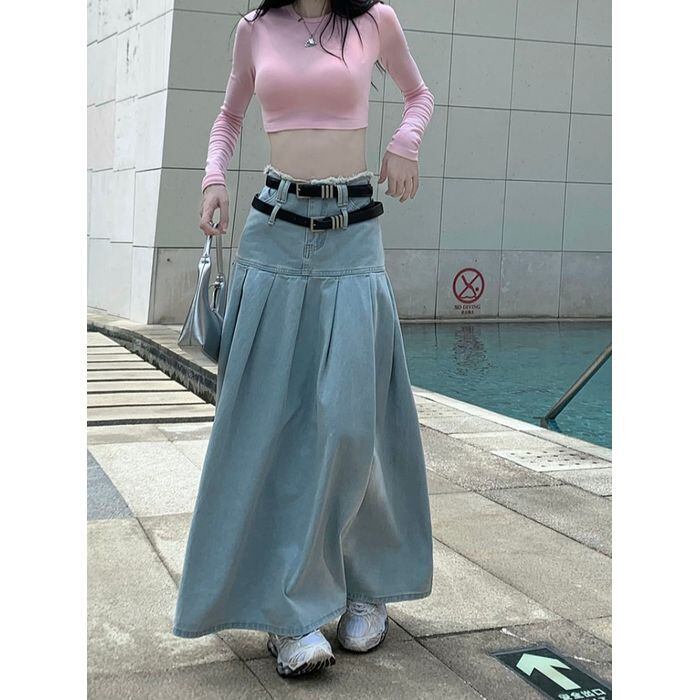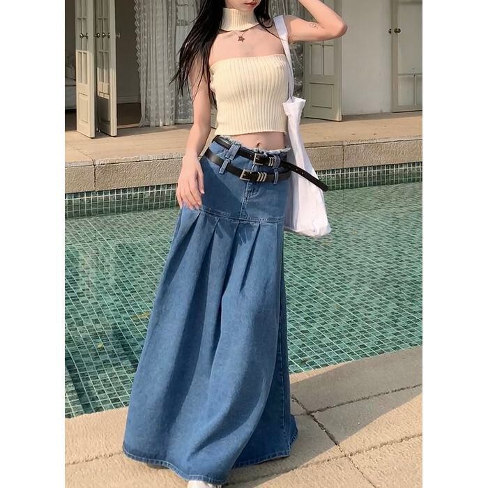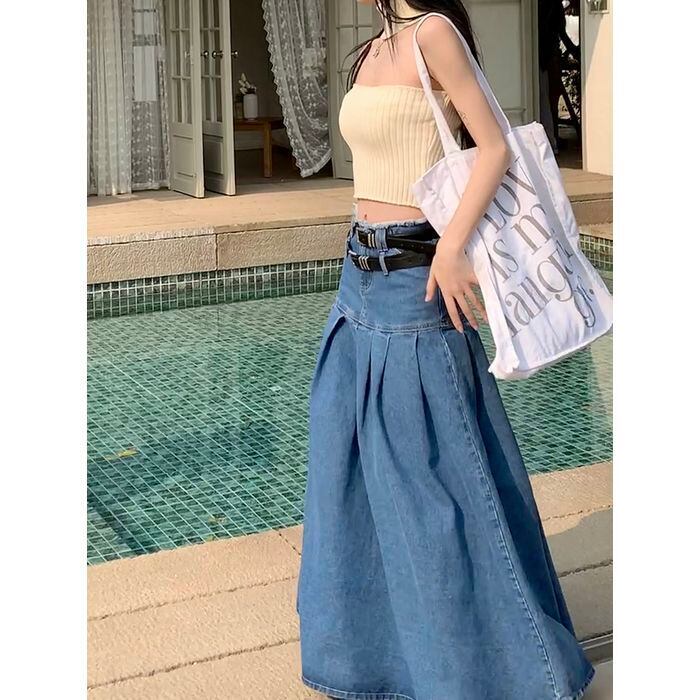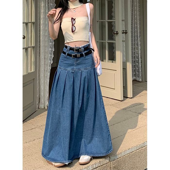 レディース スカート ボトムス ロングスカート デニムスカート ロング ロング丈 マキシ マキシ丈 ウエストマーク ベルト デニム ブルーデニム カラーデニム かわいい 大人可愛い シンプル おしゃれ お洒落 アジアン エスニック エキゾチック 大人可愛い 大人女子 こなれ感 個性的 無地 春 夏 秋 オールシーズン レディース デート お出かけ お泊まり 着回し 普段使い ファッション スタイル 楽ちん S M L ブルー