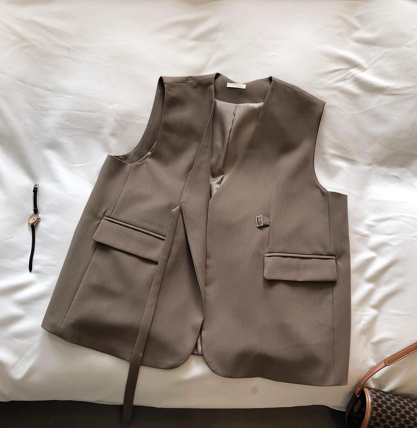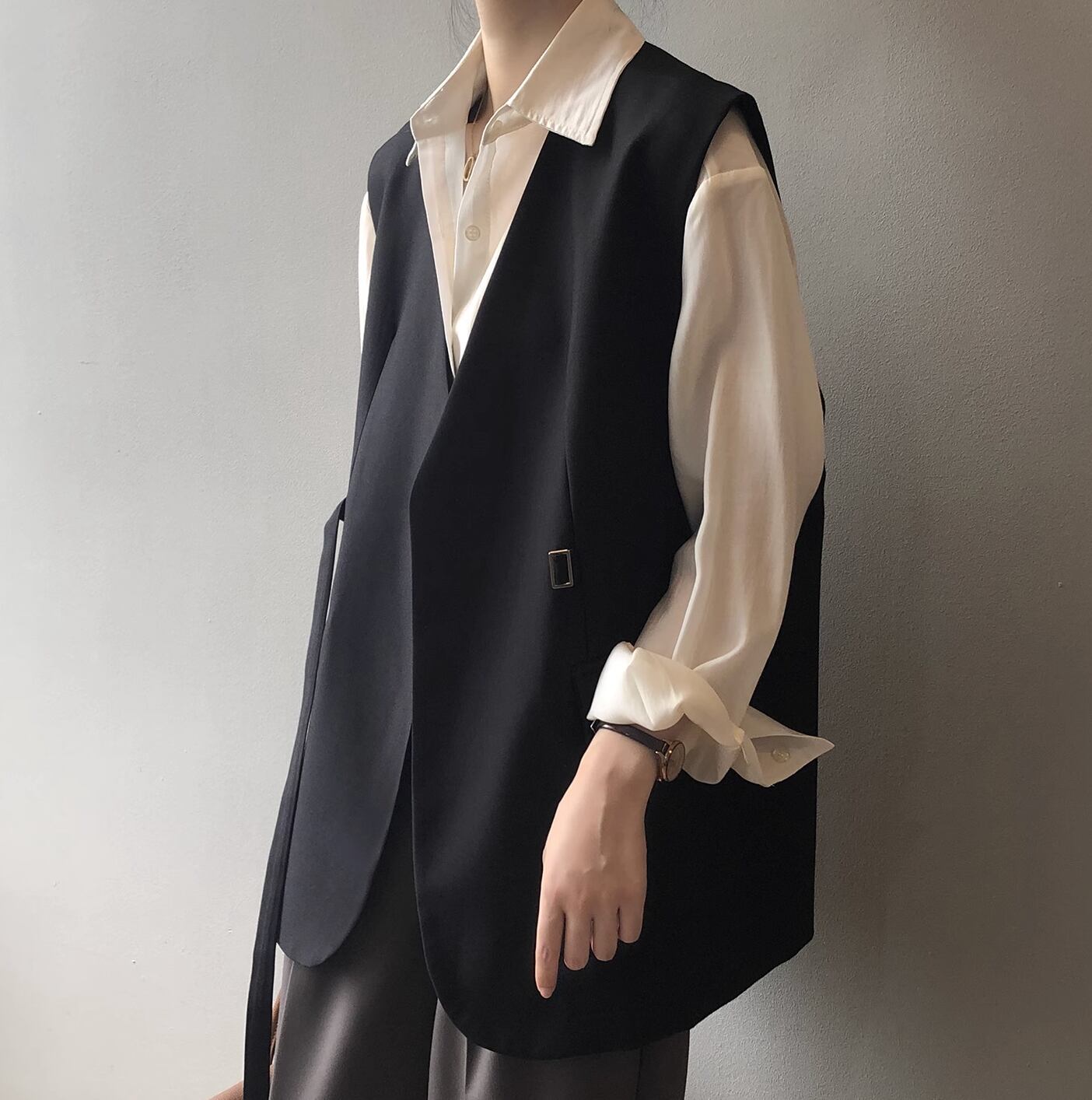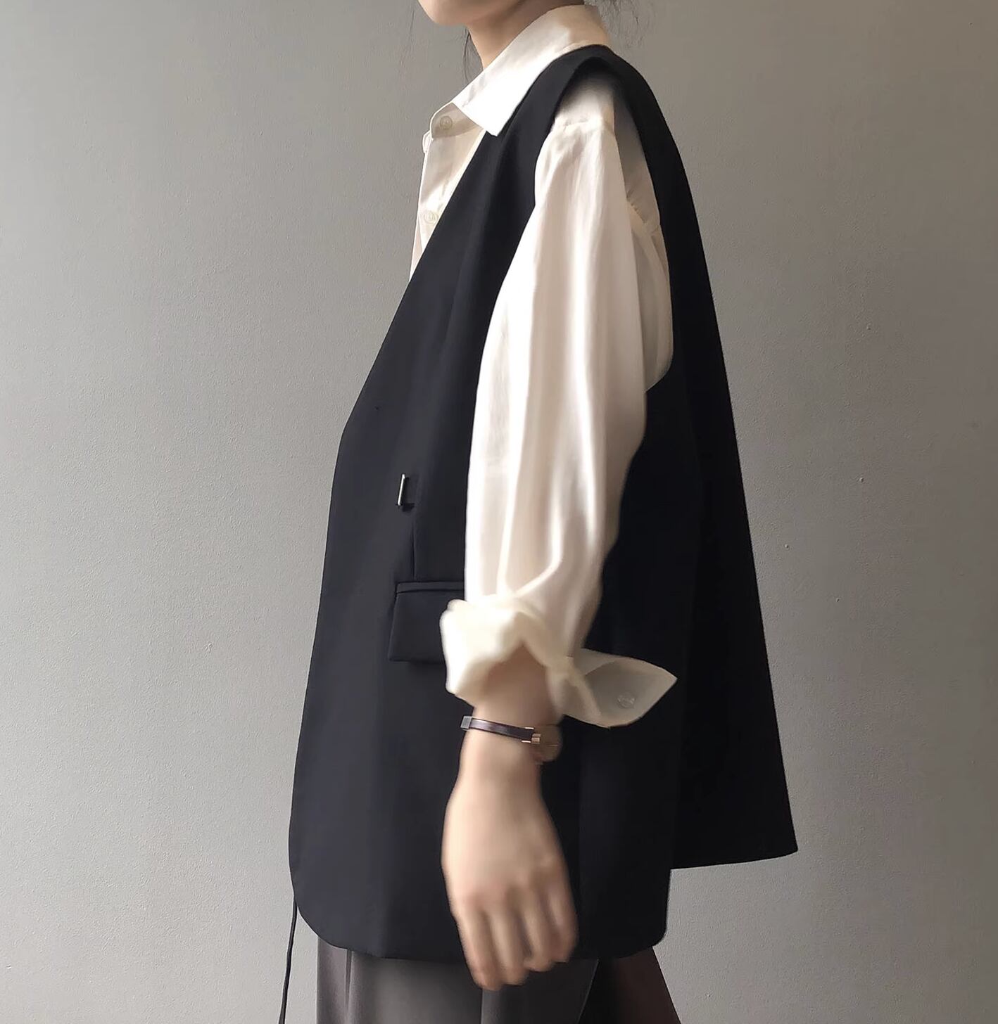 カジュアルな中に上品さを感じさせるベストです。