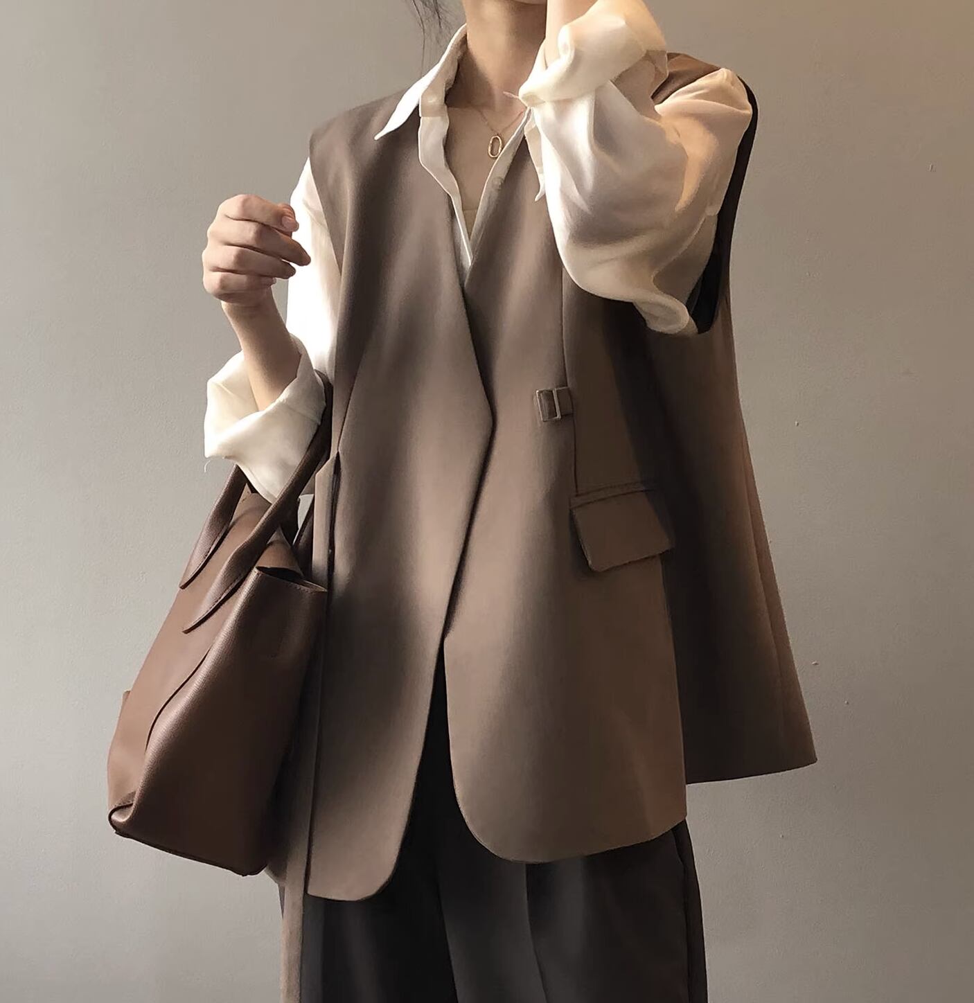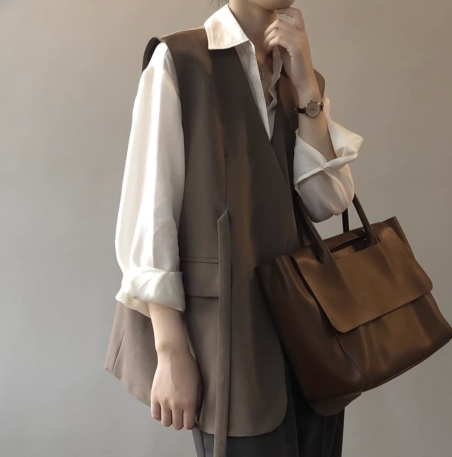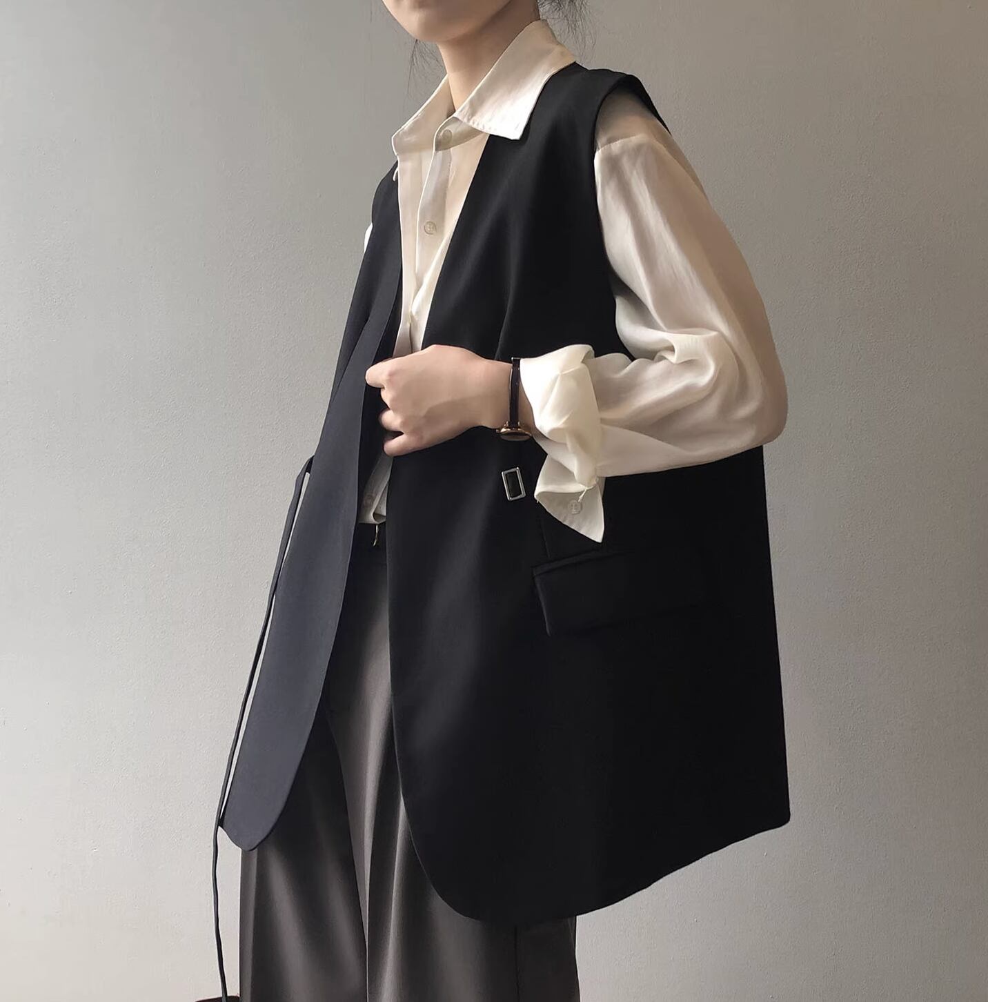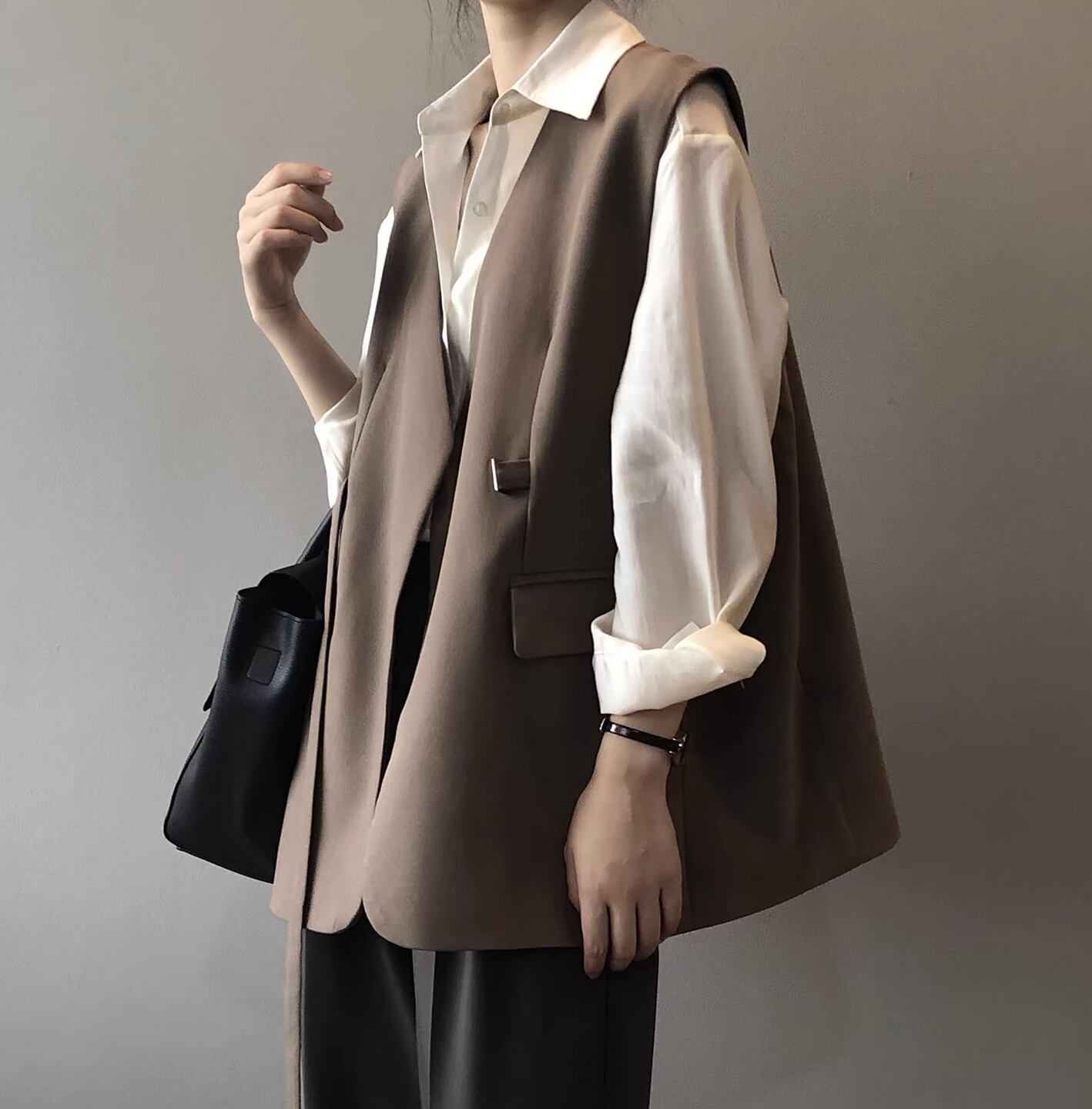 カジュアルな中に上品さを感じさせるベストです。