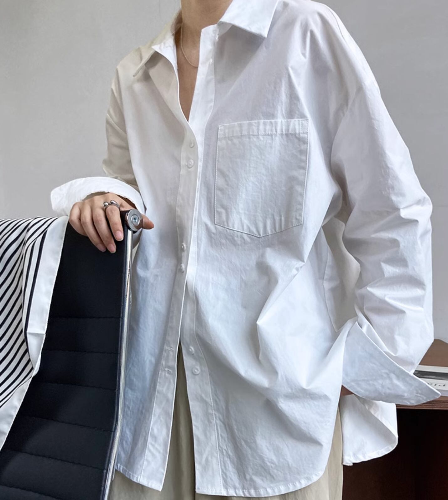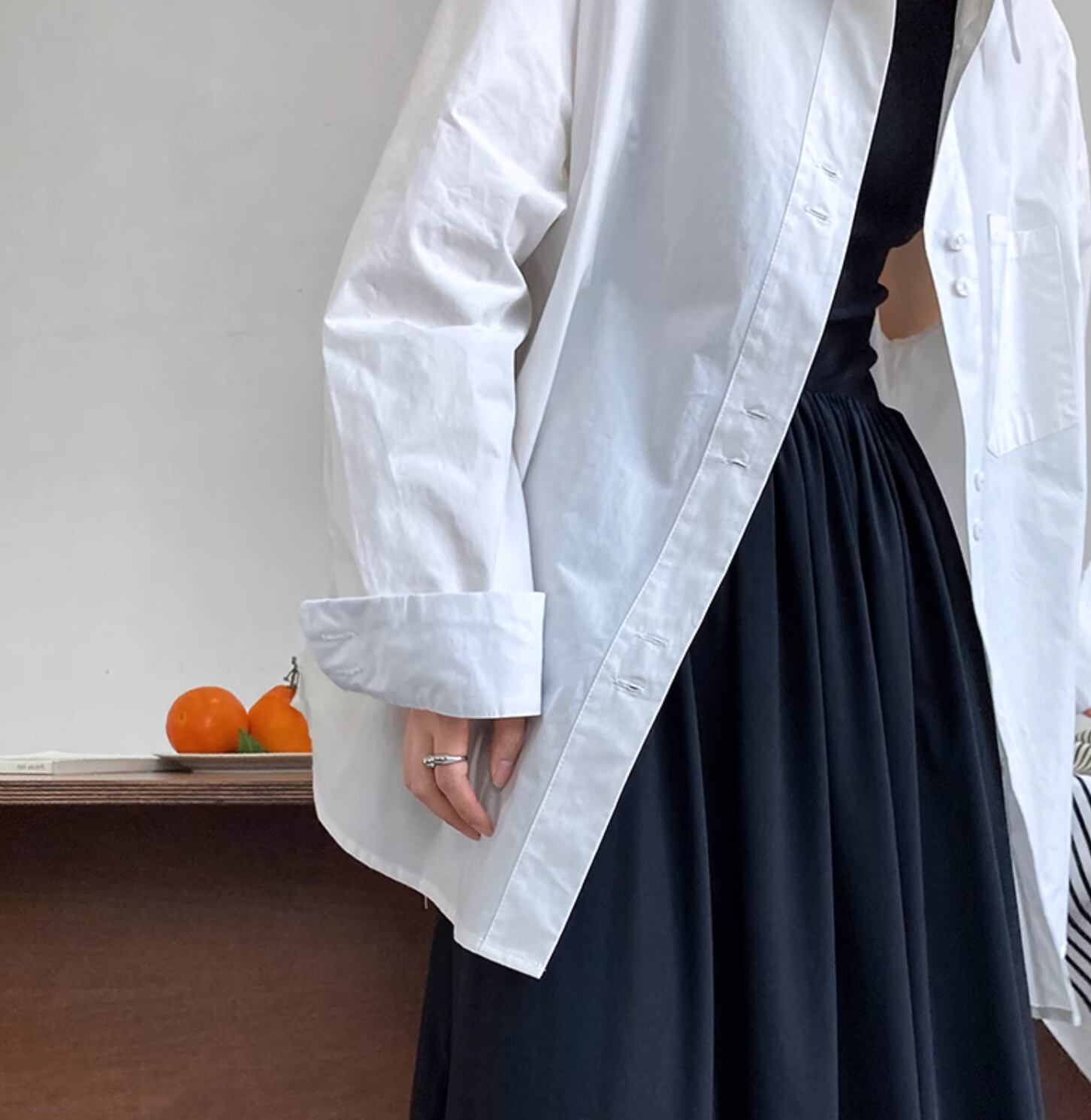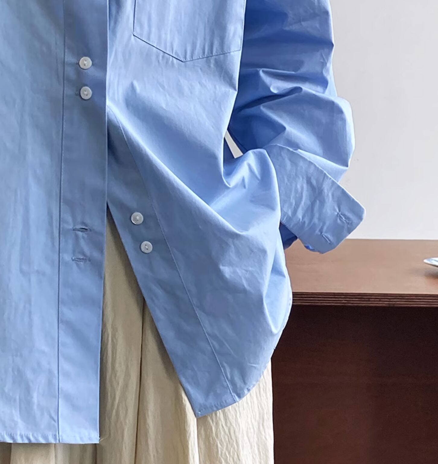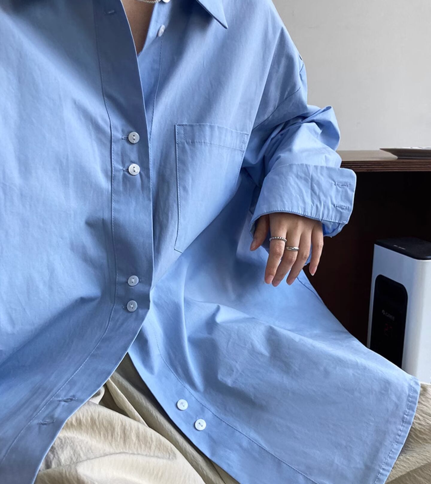 レディース トップス シャツ ブラウス ミディアム ミドル丈 長袖 襟付き ポロカラー ワイド ストレート ポケット ボタン かわいい 大人可愛い きれいめ シンプル カジュアル 上品 おしゃれ こなれ感 マニッシュ クール エレガント フォーマル 抜け感 クラシカル 無地 春 夏 オフィス ビジネス OL 通勤 学生 学校 通学 お出かけ 休日 ショッピング お花見 カフェ コーデ 楽ちん 体型カバー 普段使い 着回し モテ 定番 M L ゆったり ゆる 白 ホワイト 水色 ブルー 大人カラー 春カラー