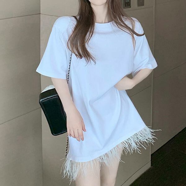 個性的 レディース トップス Tシャツ 白トップス ビッグT ロング ロング丈 袖あり 半袖 ラウンドネック 襟なし フリンジ かわいい 大人可愛い シンプル カジュアル おしゃれ お洒落 大人可愛い 大人女子 こなれ感 ボーイッシュ スポーティー セクシー 主役級 存在感 無地 春 夏 秋 デート お出かけ 女子会 イベント リゾート 旅行 プール 着回し 普段使い ファッション コーデ スタイル 楽ちん 体系カバー 大きめ ビッグサイズ ゆったり S M L XL ホワイト
