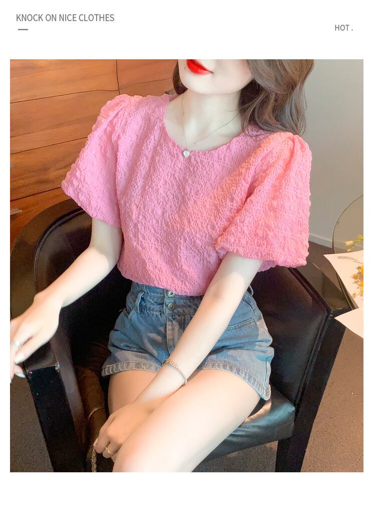 学生風 個性的 レディース トップス Tシャツ カットソー プルオーバー 袖あり 半袖 パフスリーブ ラウンドネック セミフレア シフォン もこもこ かわいい きれいめ シンプル カジュアル おしゃれ お洒落 大人女子 こなれ感 ラブリー キュート ガーリー 個性的 主役級 存在感 無地 春 夏 10代 20代 女性用 デート お出かけ 女子会 イベント リゾート 旅行 レストラン 着回し 普段使い 韓国系 ファッション コーデ 楽ちん インスタ映え S M L XL 2XL ゆったり ゆる ピンク