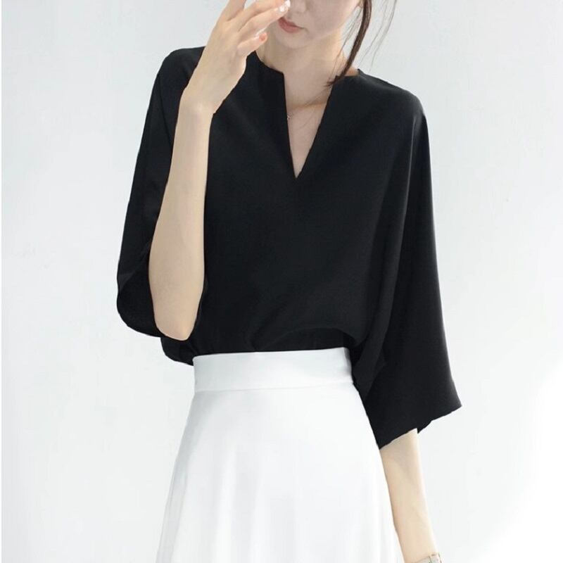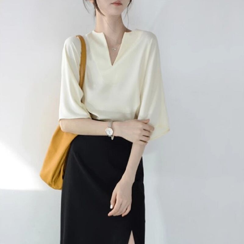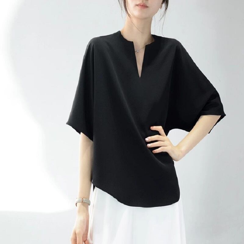 レディース シャツ プルオーバー 5分袖 Vネック 襟付き ストレート 大人可愛い きれいめ シンプル 上品 おしゃれ クール エレガント 主役級 フォーマル 抜け感 かっちり キュート 都会的 クラシカル 学生風 無地 春 夏 謝恩会 発表会 授業参観 大会 会議 ミーティング プレゼン オフィス ビジネス OL 通勤 学生 学校 通学 お出かけ パーティー イベント レストラン 就活 発表会 カフェ コーデ プレゼント モテ 清楚 トレンド インスタ映え S M L XL ブラック オフホワイト
