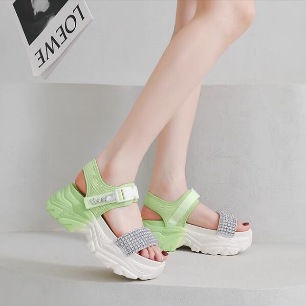 靴 シューズ サンダル 厚底サンダル ラインストーン カジュアルシューズ ハイヒール 春 ベルクロ レジャー オープントゥ アンクルストラップ メッシュ レディース スリッポン ミュール スリッパ 7cm 厚底 かわいい 大人可愛い おしゃれ ラブリー キュート ガーリー スポーティー ラフ ルーズ 存在感 スタイリッシュ デート お出かけ リゾート 旅行 海 普段使い コーデ スタイル モテ 22.5cm 23.0cm 23.5cm 24.0cm 24.5cm 白 黒 緑 ホワイト ブラック グリーン