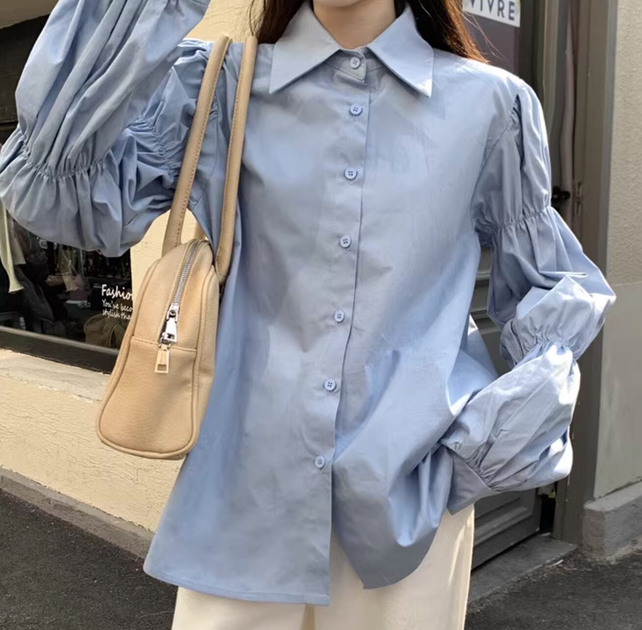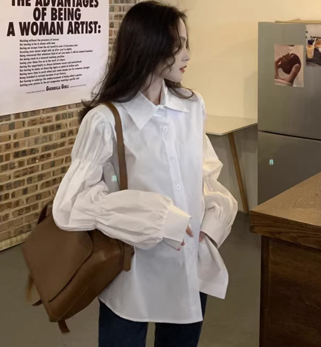 ボリュームのある袖が女性らしさを引き立て、カジュアルからフォーマルまで幅広い場面で活躍できます。