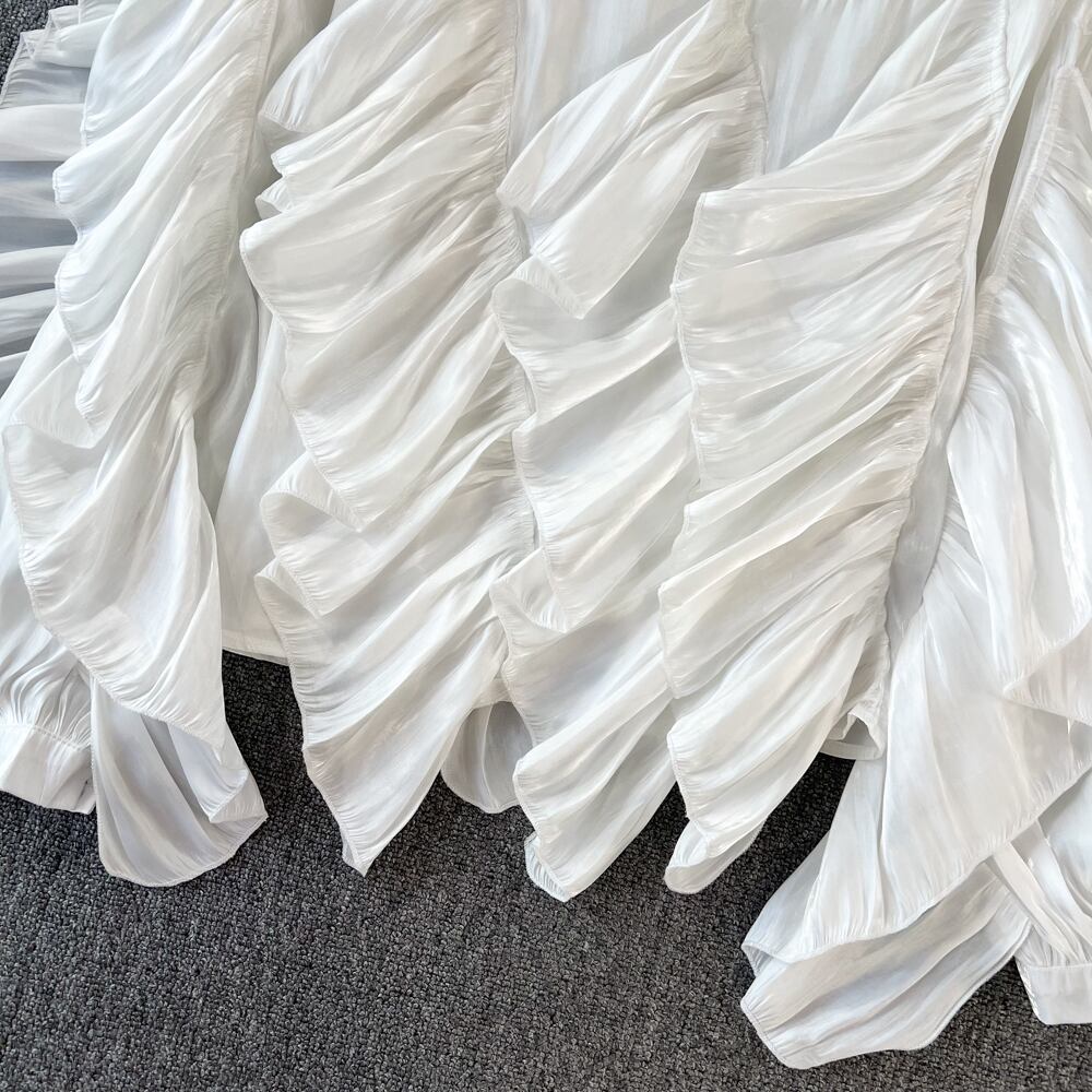 個性的 レディース トップス シャツ ブラウス 袖あり 長袖 ボリューム袖 ラウンドネック フレア セミフレア ワイド Aライン プリーツ フリル もこもこ モコモコ 大人可愛い 大人 おしゃれ お洒落 アジアン エレガント 主役級 存在感 フォーマル とろみ感 抜け感 無地 春 夏 10代 20代 30代 女性用 デート お出かけ 女子会 パーティー リゾート ホテル レストラン 普段使い ir 体系カバー インスタ映え 色展開 白 ホワイト 黒 ブラック 紫 パープル 黄色 イエロー 大人カラー