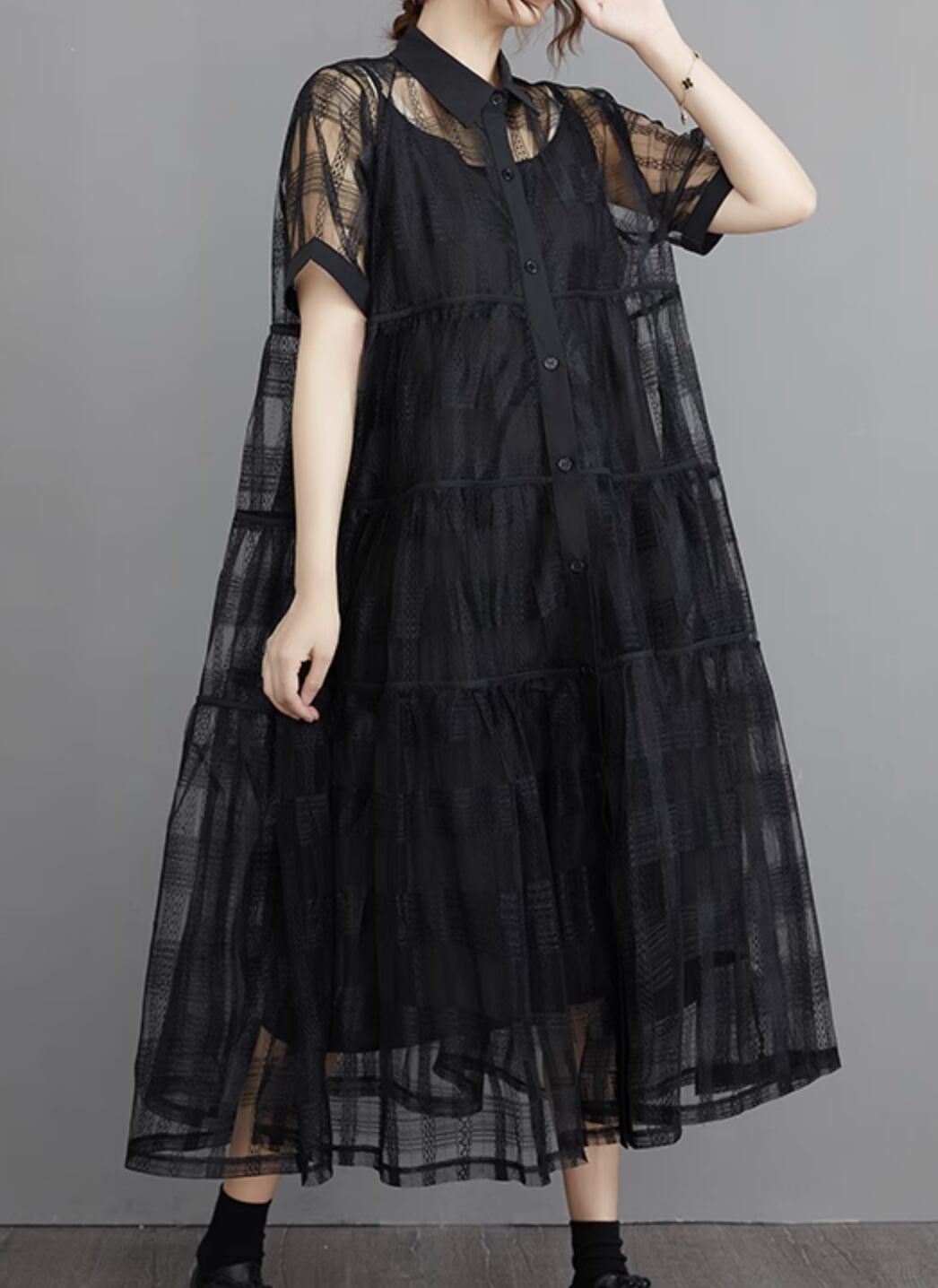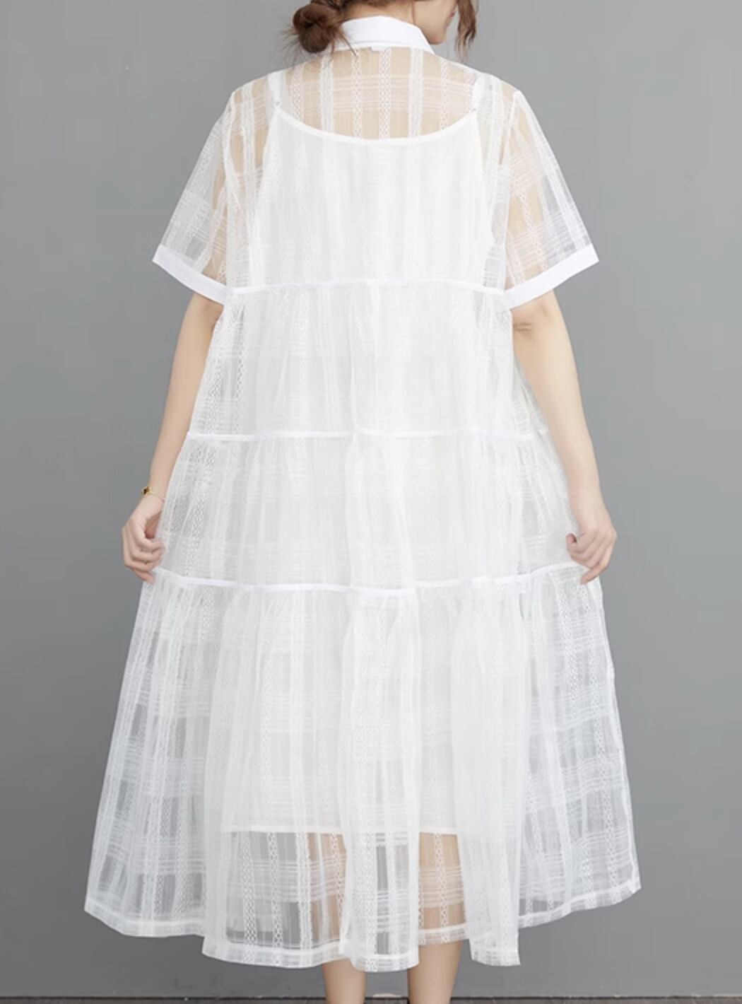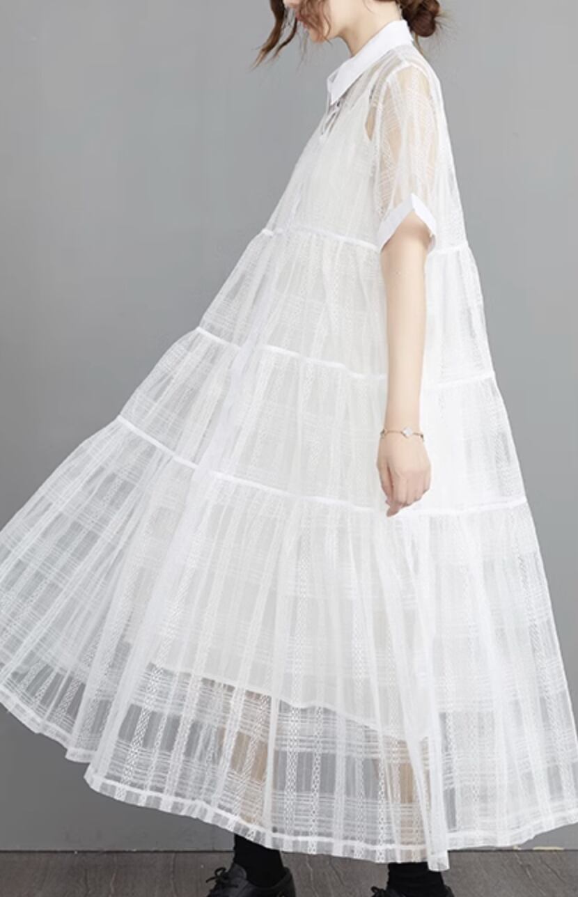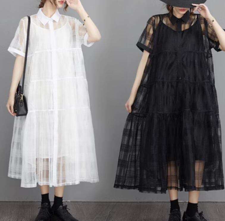 レディース ワンピース オールインワン シャツワンピース フレアワンピース ワンピドレス ロング ロング丈 半袖 襟付き セミフレア Aライン シフォン フリル 前開き かわいい 大人可愛い きれいめ シンプル 上品 おしゃれ お洒落 エレガント モダン 主役級 存在感 フォーマル 無地 柄 チェック柄 春 夏 10代 30代 デート お出かけ 女子会 休日 パーティー イベント ホテル レストラン 普段使い 韓国系 ファッション スタイル 楽ちん 体系カバー ゆったり 白 ホワイト 黒 ブラック