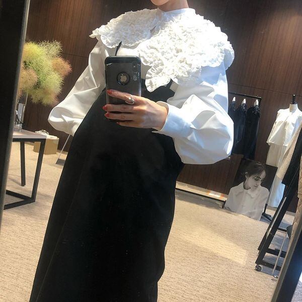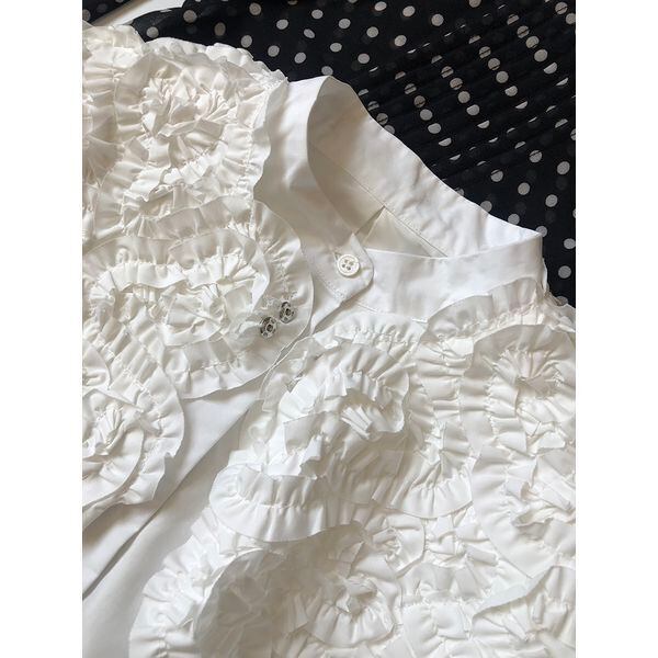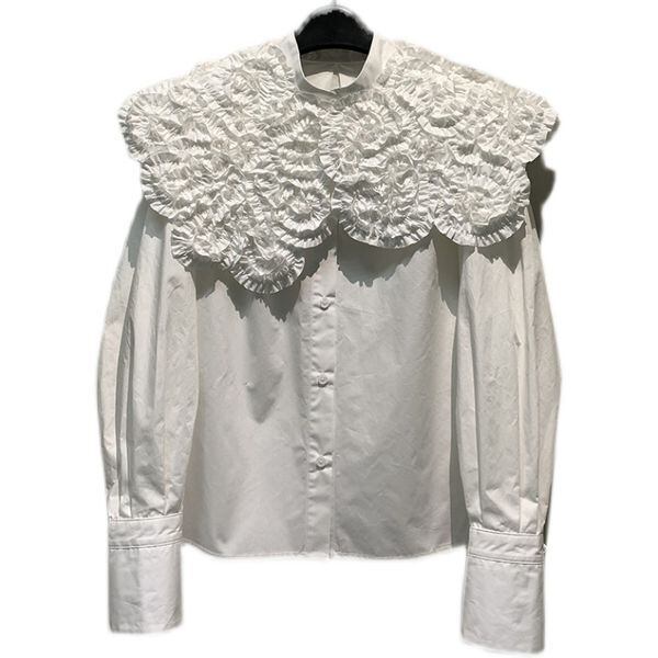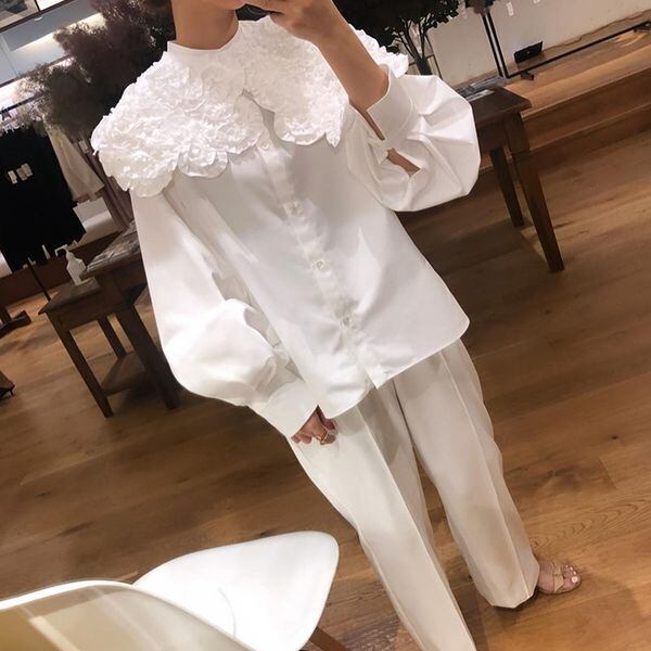 レディース トップス シャツ ブラウス ミディアム丈 長袖 ボリューム袖 ドルマンスリーブ パフスリーブ 襟付き 丸襟 ワイド ストレート フリル コサージュ 花 前開き かわいい 大人可愛い きれいめ シンプル カジュアル 上品 おしゃれ レトロ こなれ感 ラフ ガーリー 抜け感 ラブリー キュート 都会的 無地 春 夏 学生 学校 通学 デート お出かけ 休日 ショッピング フェス オルチャン コーデ 楽ちん 体型カバー 普段使い 着回し モテ S M L 白 ホワイト