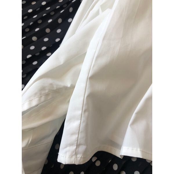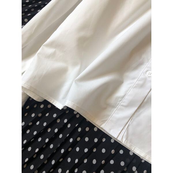 ハイウエストのパンツやスカートと合わせる事でスタイルアップできるお洒落ブラウスです。