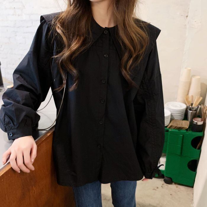レディース トップス シャツ ブラウス ミディアム ミドル丈 長袖 ボリューム袖 パフスリーブ 襟付き ワイド ストレート ビッグシルエット 前開き ボタン かわいい 大人可愛い きれいめ シンプル カジュアル 上品 おしゃれ ラフ ルーズ クール エレガント フォーマル 抜け感 キュート クラシカル フェニミン 無地 春 夏 秋 学生 学校 通学 お出かけ 休日 ショッピング カフェ コーデ 楽ちん 体型カバー 普段使い 着回し モテ 清楚 M L XL 2XL 3XL 4XL