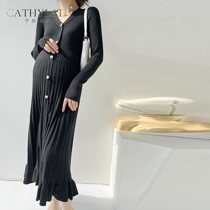 ワンピース ニットワンピ フロントボタン リブニット 長袖 フリルヘム Vネック ミモレ丈 ひざ下 膝下 マタニティ ゆったり ルーズ かわいい 大人可愛い きれいめ シンプル カジュアル レディース こなれ感 ラフ ガーリー ルーズ 主役級 存在感 抜け感 ラブリー キュート 無地 秋 冬 学生 学校 通学 デート お出かけ 女子会 休日 合コン 韓国 オルチャン コーデ 普段使い 着回し モテ フリーサイズ ベージュ ブラック