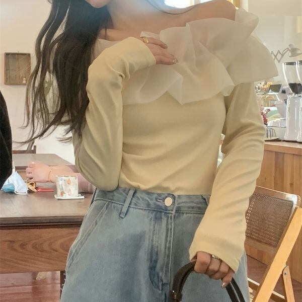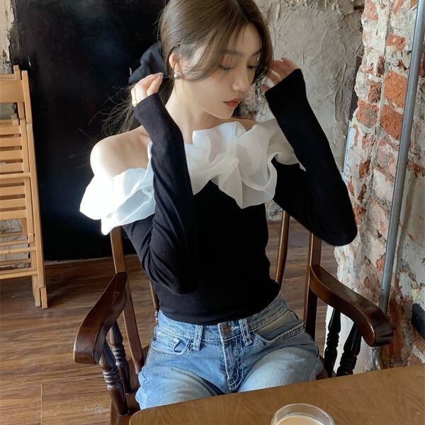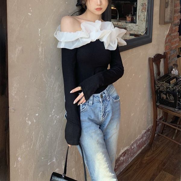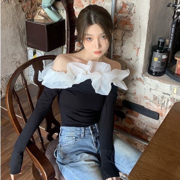 レディース トップス シャツ ブラウス カットソー 袖あり 長袖 フリル ラッフル オフショルダー オフショル ふわふわ かわいい 大人可愛い きれいめ シンプル カジュアル 上品 おしゃれ お洒落 こなれ感 ラブリー キュート ガーリー セクシー エレガント 主役級 存在感 無地 春 秋 10代 20代 女性用 パーティー イベント リゾート 旅行 モテ 体系カバー インスタ映え ゆったり S M L ブラック 白 ホワイト
