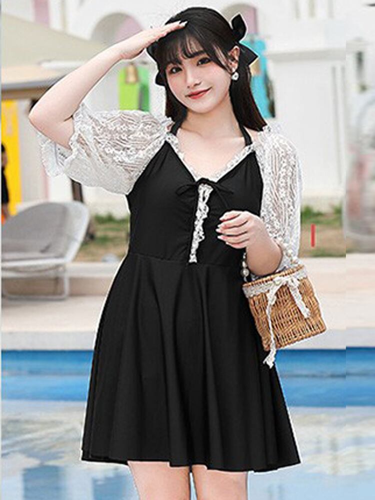 レディース 長袖 水着 スイムウェア ワンピース水着 セクシービキニ 体系カバー水着 羽織り ワンピース 半袖 レース 刺繍 透け感 シースルー 胸元 谷間 日焼け防止 メッシュ メッシュ素材 セット 2点セット かわいい 大人可愛い きれいめ セクシー おしゃれ お洒落 主役級 存在感 スタイリッシュ 無地 10代 20代 海 ビーチ プール リゾート スタイルアップ インスタ映え 3XL 4XL 5XL 6XL 大きいサイズ 大きい ビッグサイズ ぽっちゃり 7XL 8XL 9XL 黒 ブラック