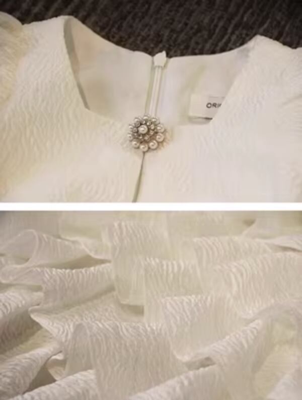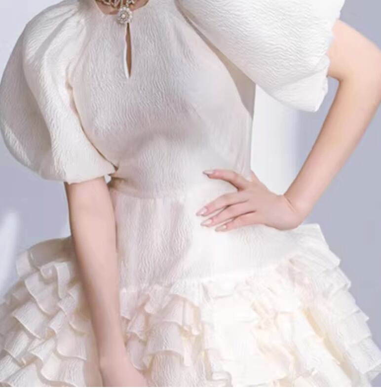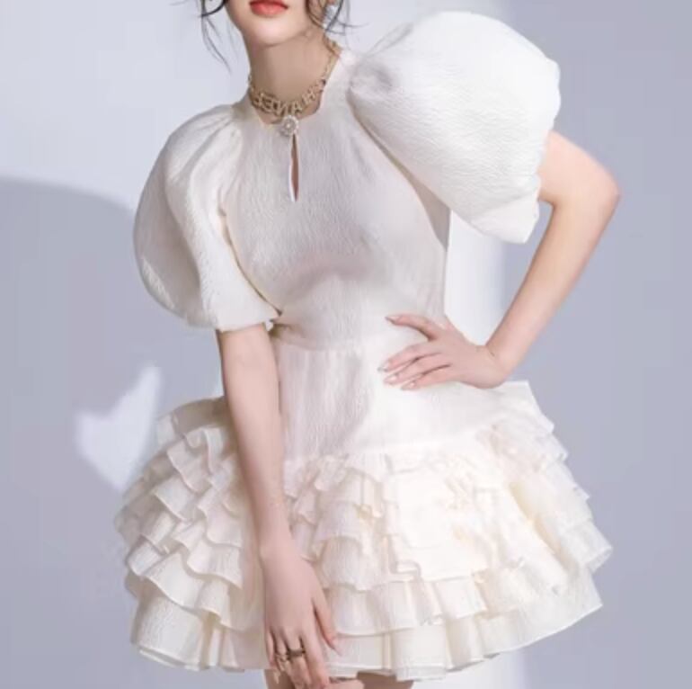 ボリューム袖が実際に着るとさらに可愛さが引き立つデザイン。 フレアなシルエットが女性らしさを引き立て、パーティーだけでなくデートや女子会にもぴったりです。