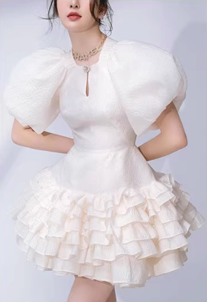 個性的 レディース ワンピース フリル フレアワンピース ワンピドレス ミニ ミニ丈 ショート ショート丈 袖あり 半袖 ボリューム袖 パフスリーブ Uネック ラウンドネック フレア セミフレア プリーツ 大人女子 こなれ感 キュート ガーリー ルーズ セクシー エレガント 主役級 存在感 フォーマル 無地 春 夏 二次会 披露宴 10代 20代 女性用 デート 女子会 パーティー イベント 普段使い ファッション スタイル 体系カバー 美脚 脚長 インスタ映え サイズ S M L XL 白 ホワイト