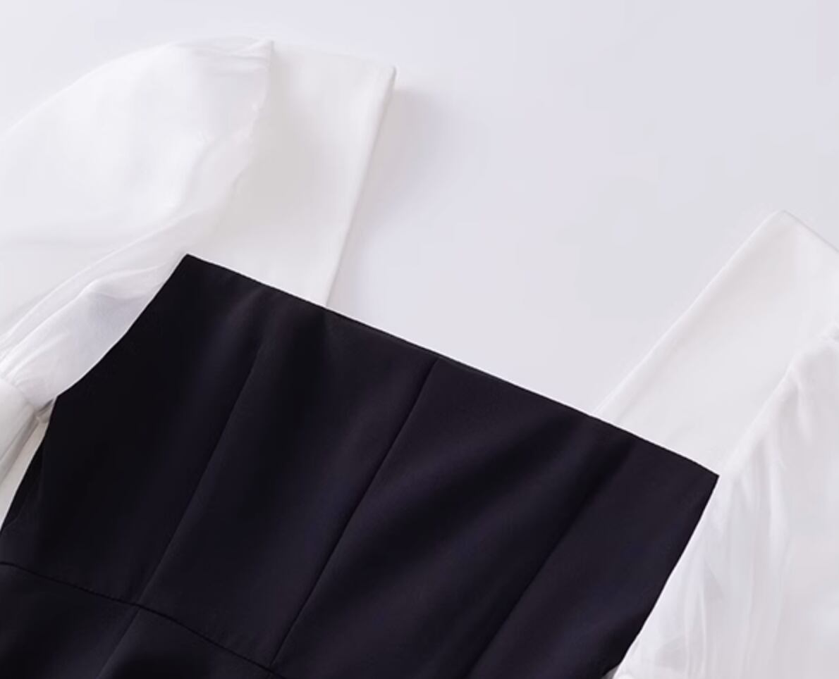 甘く可愛らしい印象の個性的なレディースワンピース。黒のフレアスカートと白のブラウスの切り替えデザインが、存在感のあるシルエットを演出します。上品さと華やかさを兼ね備えたデザインは、パーティーや二次会、イベントなどの特別な場面にもおすすめです。