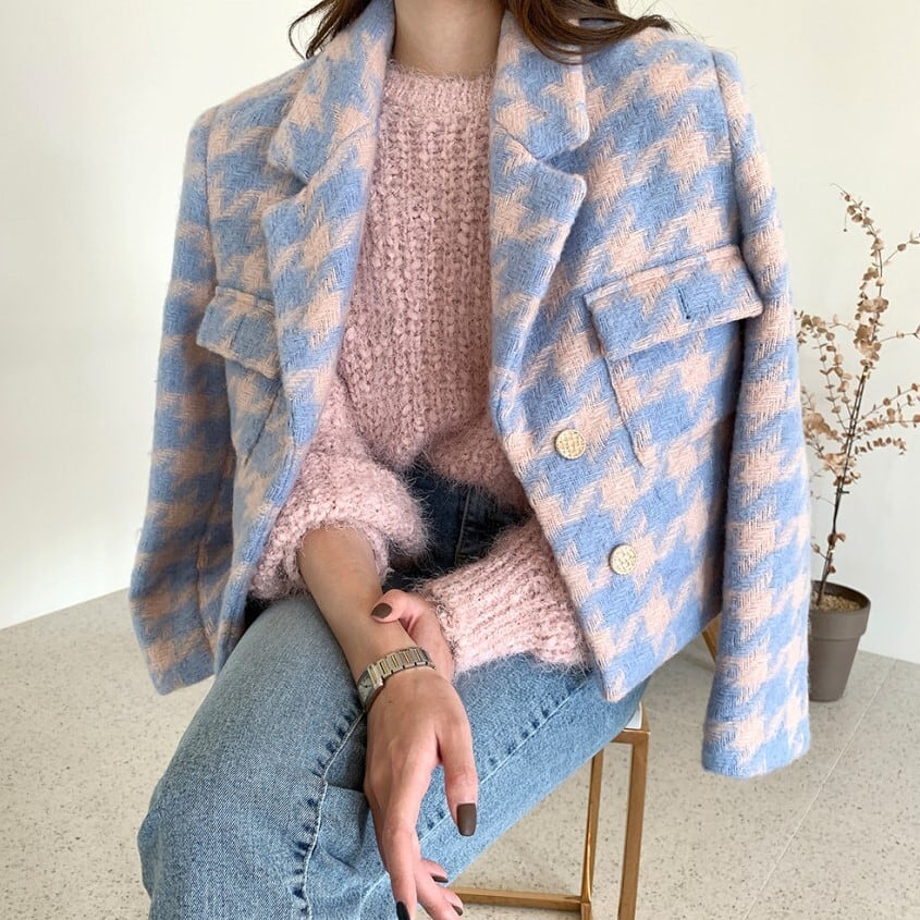 レディース ジャケット アウター 上着 テーラードジャケット ショート 長袖 ストレート シングルブレスト ポケット ボタン かわいい 大人可愛い きれいめ シンプル カジュアル 上品 おしゃれ かっこいい こなれ感 ラフ ガーリー ラブリー キュート 千鳥格子 秋 冬 通勤 学生 通学 デート お出かけ パーティー イベント 女子会 ショッピング カフェ ランチ 韓国 コーデ 楽ちん 暖かい 防寒 体型カバー 普段使い 着回し モテ トレンド 流行 インスタ映え ゆったり フリーサイズ ブルー