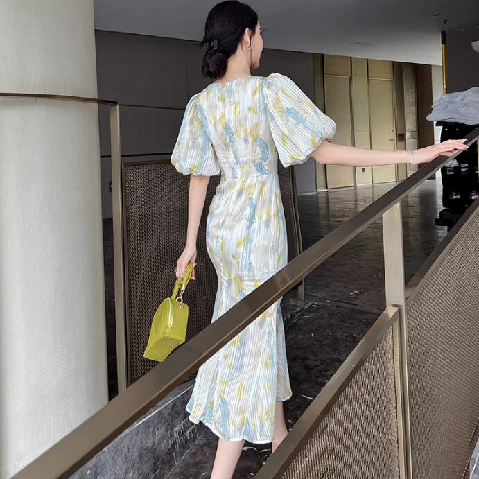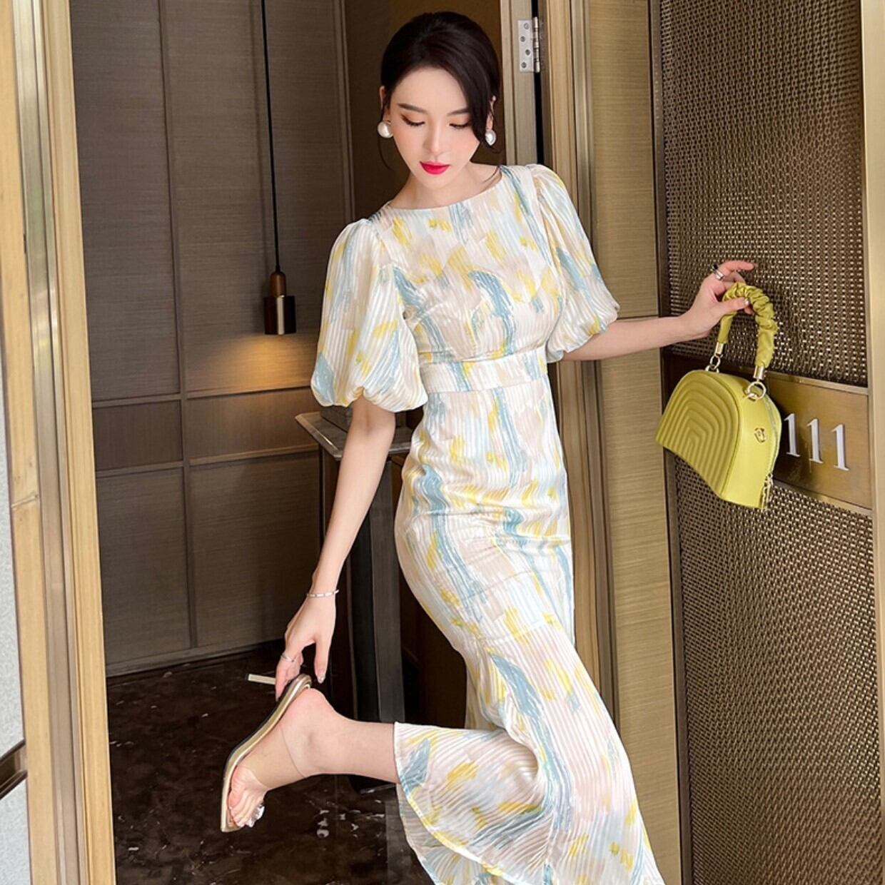 レディース ワンピース プルオーバー ミモレ 半袖 パフスリーブ ラウンドネック フレア 細身 マーメイド シフォン ハイウエスト かわいい 大人可愛い きれいめ シンプル カジュアル 上品 おしゃれ ガーリー エレガント 主役級 キュート ナチュラル 春 夏 謝恩会 結婚式 二次会 披露宴 発表会 OL 通勤 デート お出かけ パーティー イベント リゾート レストラン 女子会 ホテル ガーデン コンサート 韓国 コーデ 着回し モテ 清楚 トレンド 流行 インスタ映え S M L XL イエロー