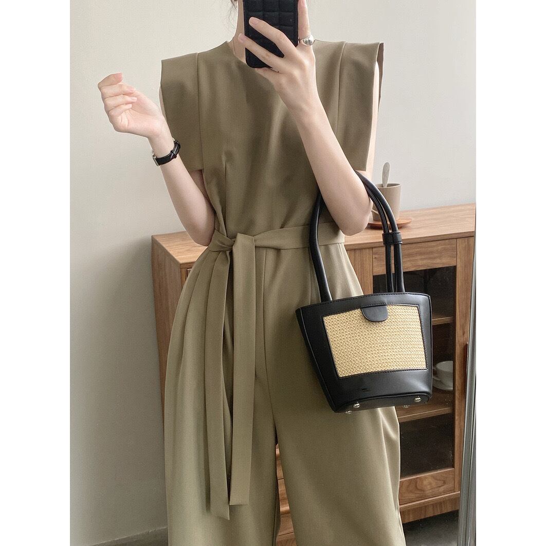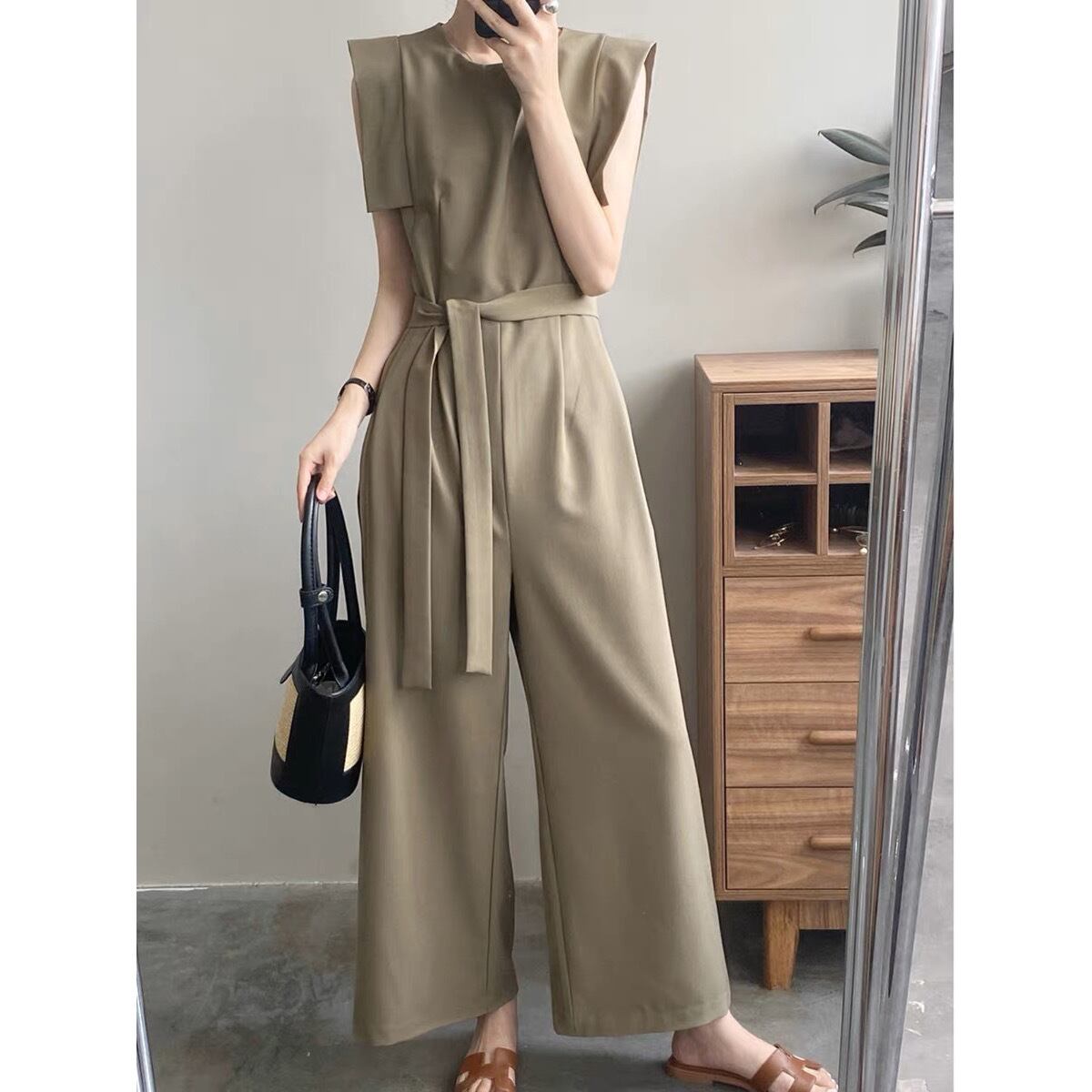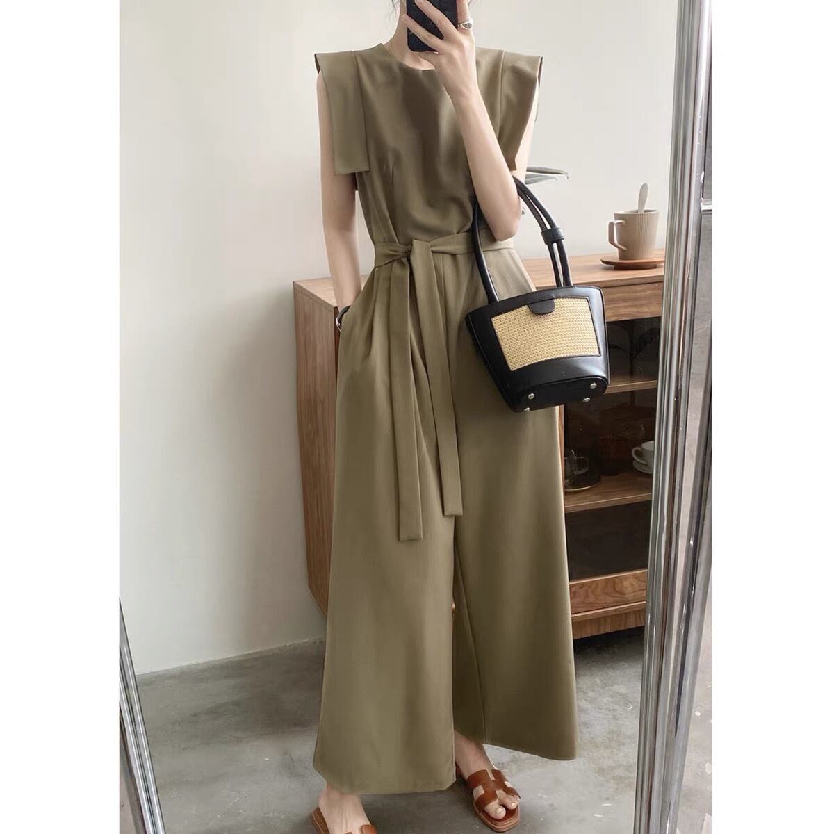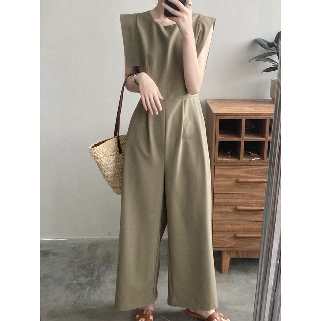 セットアップ オールインワン ワイドパンツ ロング ロング丈 袖なし ノースリーブ ワイド ガウチョ ハイウエスト 無地 大人可愛い きれいめ シンプル カジュアル 大人 上品 おしゃれ お洒落 かっこいい こなれ感 クール モード系 抜け感 ハンサム 春 夏 入学式 入園式 卒業式 卒園式 20代 30代 40代 レディース 女性用 デート お出かけ 女子会 休日 ショッピング 着回し 普段使い 韓国 韓国系 オルチャン ファッション コーデ スタイル インスタ映え ワンホン 色 カーキ サイズ M L