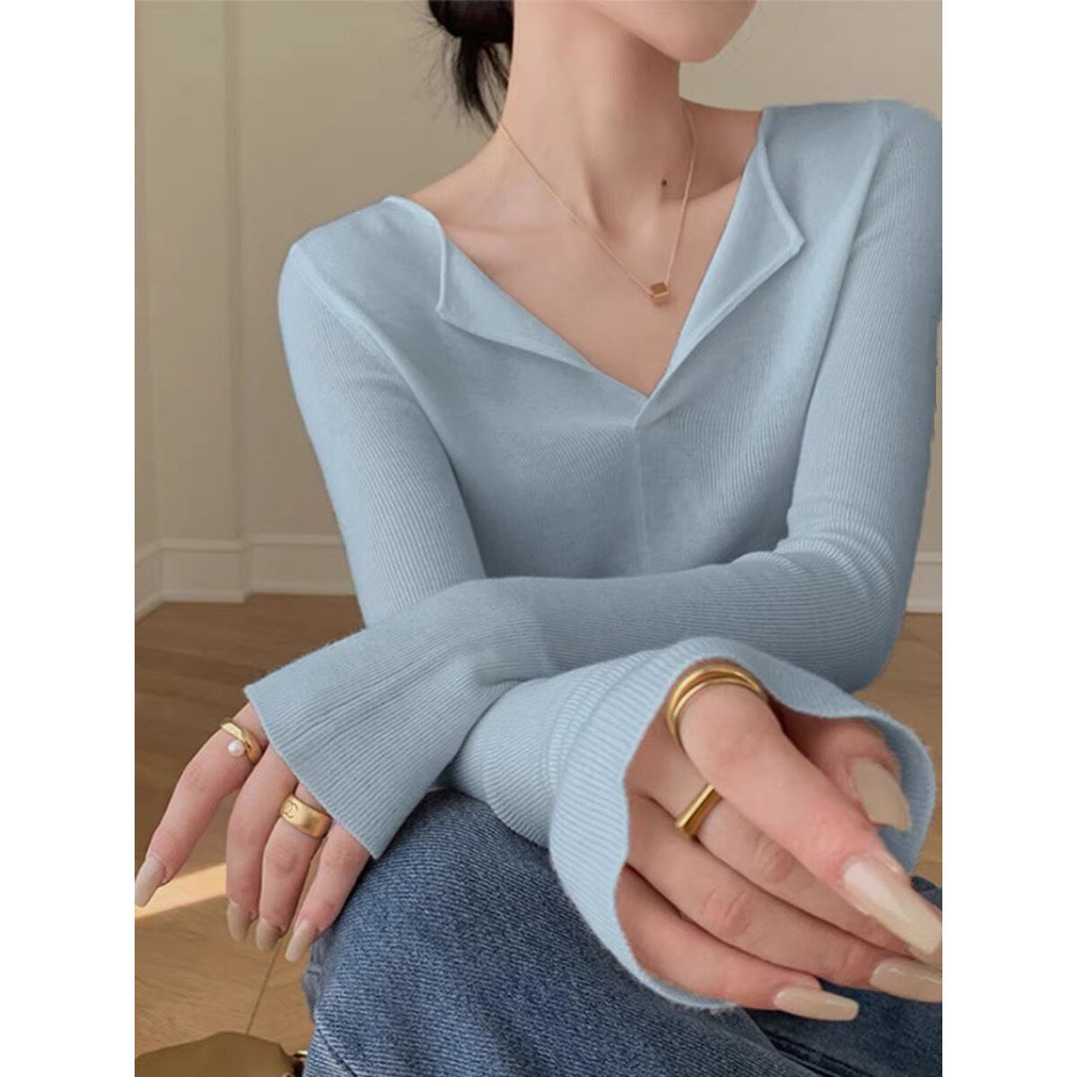トップス ニットソー 袖あり 長袖 Vネック スリム ニット 無地 きれいめ シンプル カジュアル ヘルシー 大人 おしゃれ お洒落 大人女子 こなれ感 ラフ 抜け感 レトロ 春 夏 秋 10代 20代 30代 40代 レディース 女性用 デート お出かけ 女子会 休日 ショッピング 公園 着回し 普段使い 韓国 韓国系 オルチャン ファッション コーデ スタイル モテ インスタ映え ワンホン 色展開 白 ホワイト 黒 ブラック 緑 グリーン カーキ ピンク 水色 ライトブルー サイズ S M L XL