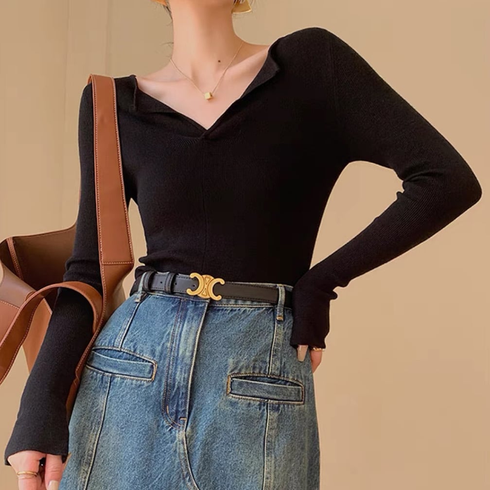 こなれ感のあるデザインがオシャレなVネックニットソー