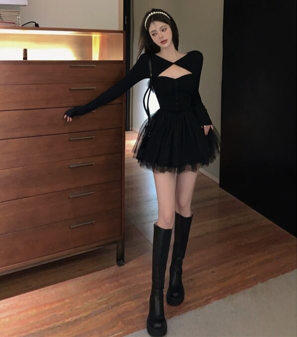 浅いVネックの下は胸元がカットされていて、セクシーな雰囲気も演出します♪