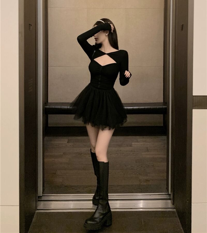個性的 レトロ ワンピース ドレス フレアワンピース ワンピドレス ミニ ミニ丈 ショート ショート丈 袖あり 長袖 Vネック 襟なし ハートカット フレア 細身 切り替えデザイン ドッキング レース チュール シフォン フリル ウエストマーク 透け感 かわいい 大人可愛い きれいめ シンプル カジュアル 大人 おしゃれ お洒落 大人女子 こなれ感 ラブリー キュート ガーリー セクシー エレガント 無地 春 秋 結婚式 二次会 10代 20代 パーティー イベント 黒 ブラック 茶色 ブラウン カーキ