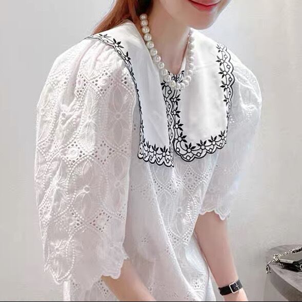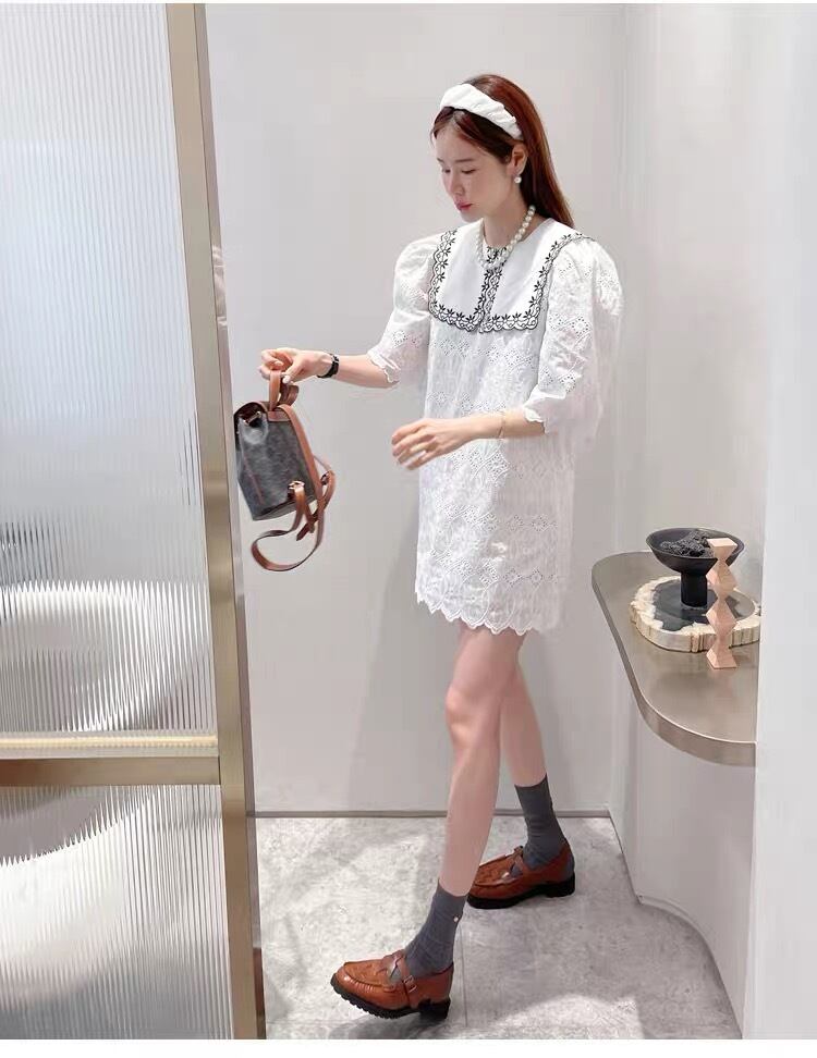ワンピース プルオーバー ミニ ミニ丈 袖あり 5分袖 五分袖 パフスリーブ 襟付き ストレート 刺繍 コットン 柄 花柄 フラワー かわいい おしゃれ お洒落 レトロ キュート ガーリー ドーリードール系 フェミニン フェアリー 春 夏 10代 20代 30代 レディース 女性用 デート お出かけ 女子会 休日 ショッピング 普段使い お揃い 双子 韓国 韓国系 オルチャン ファッション コーデ スタイル モテ 美脚 脚長 映え 色展開 白 ホワイト 黒 ブラック モノトーン サイズ S M L XL