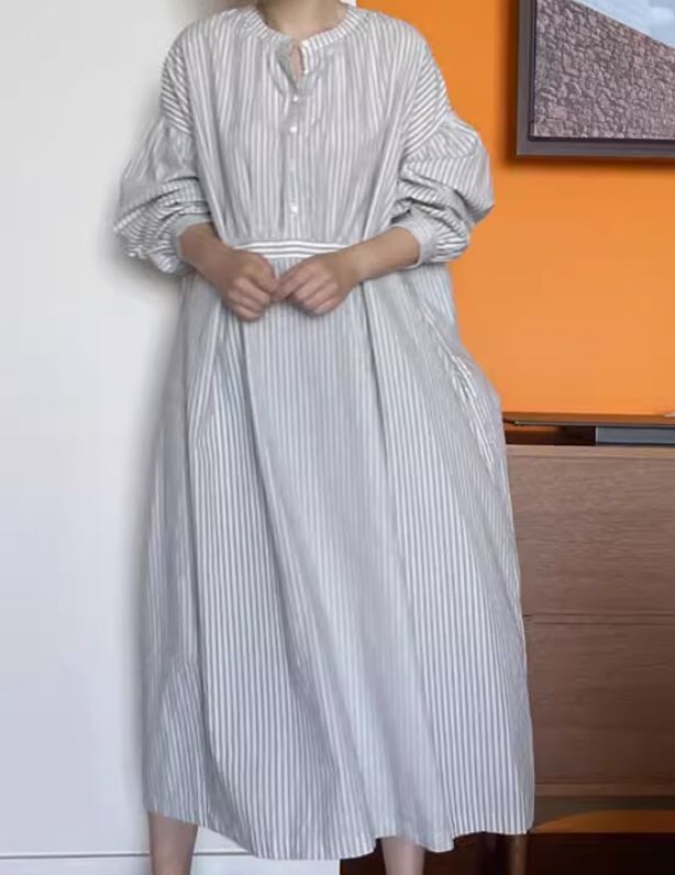 レディース ワンピース オールインワン シャツワンピース フレアワンピース ワンピドレス ミモレ ミモレ丈 袖あり 長袖 Uネック ラウンドネック 襟なし フレア セミフレア ワイド 前開き 綿 かわいい 大人可愛い きれいめ シンプル カジュアル 大人 おしゃれ エスニック エキゾチック こなれ感 ラフ ガーリー 主役級 存在感 抜け感 柄 ボーダー ストライプ 春 20代 30代 40代 女性用 デート お出かけ 公園デビュー 女子会 お泊まり 休日 着回し 普段使い インスタ映え 白 ホワイト