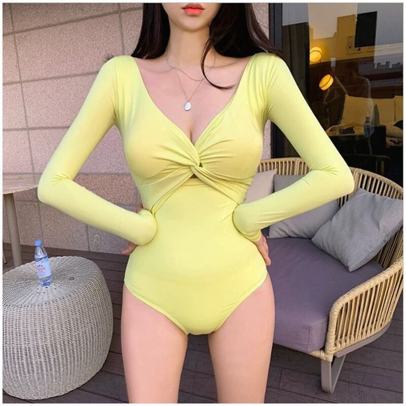 水着 スイムウェア ワンピース水着 セクシー 背中見せ セクシービキニ ワンピース 二の腕カバー 長袖 胸元 谷間 谷間魅せ 日焼け防止 無地 大人可愛い きれいめ セクシー sexy 色っぽ 女っぽ コンサバ シンプル カジュアル 大人 大人っぽい おしゃれ お洒落 女っぽ 夏 レディース 女性用 ママ リゾート 旅行 海 プール 美脚 スタイルアップ 美スタイル 韓国 韓国系 オルチャン ファッション コーデ スタイル インスタ映え 色 黒 ブラック 黄色 オフホワイト イエロー M L XL サイズ