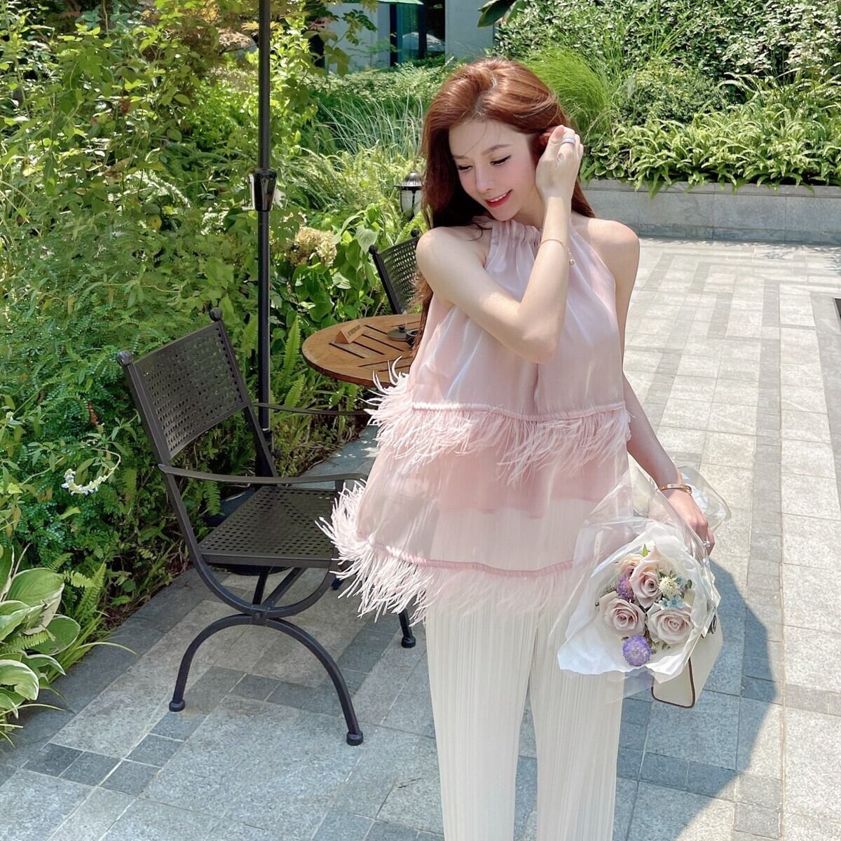 レディース トップス プルオーバー ノースリーブ ホルターネック シースルー ふんわり 羽 かわいい 大人可愛い きれいめ シンプル カジュアル 上品 おしゃれ こなれ感 ラフ ガーリー エレガント 主役級 ラブリー キュート ナチュラル 無地 春 夏 謝恩会 デート お出かけ パーティー イベント リゾート 旅行 海 レストラン 女子会 ホテル ガーデン ショッピング コンサート ライブ 韓国 コーデ 楽ちん 体型カバー 着回し モテ トレンド 流行 インスタ映え S M ゆったり ピンク パープル