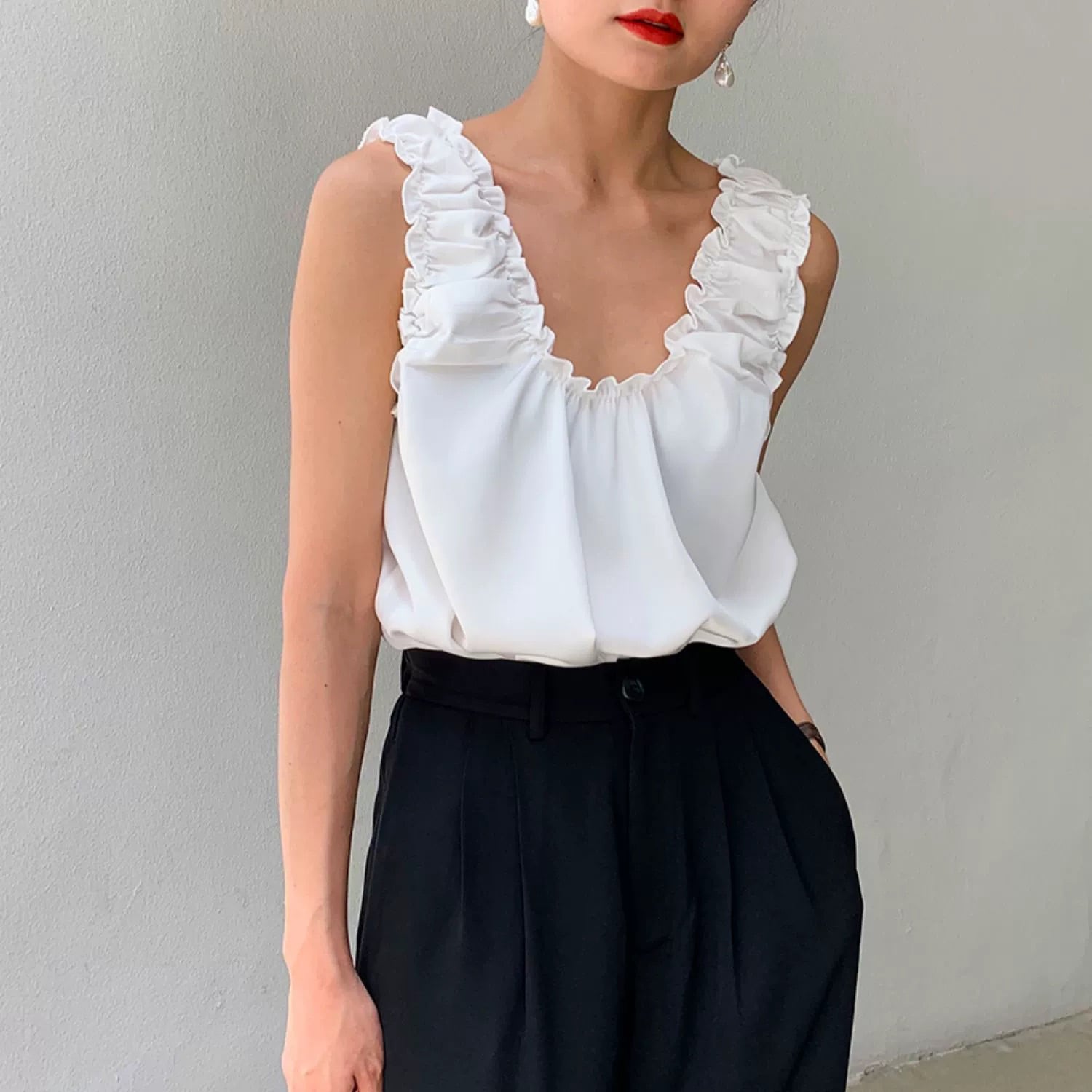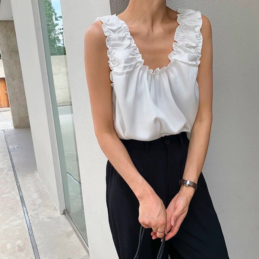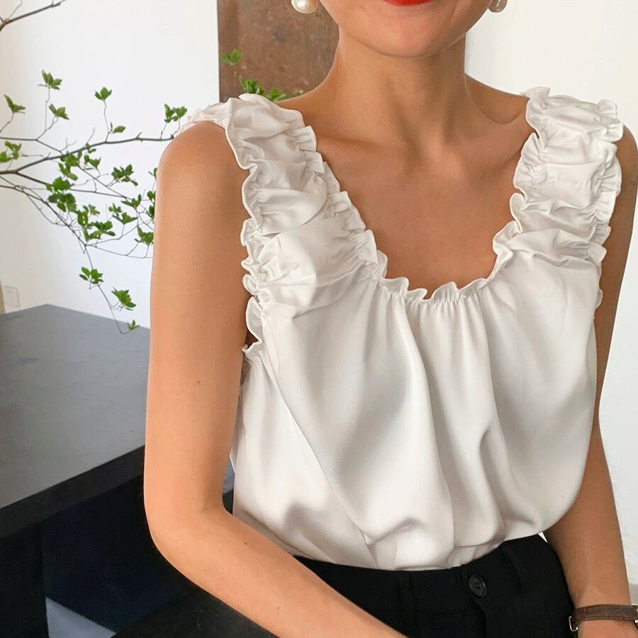バックレス トップス プルオーバー 袖なし ノースリーブ Uネック フリル ギャザー 無地 大人可愛い きれいめ シンプル カジュアル 大人 おしゃれ お洒落 オトナ可愛い こなれ感 ラフ ルーズ 抜け感 春 夏 10代 20代 30代 40代 レディース 女性用 デート お出かけ 女子会 休日 ショッピング 着回し 普段使い 韓国 韓国系 オルチャン ファッション コーデ スタイル 楽ちん モテ インスタ映え ワンホン 白 ホワイト 黒 ブラック モノトーン サイズ フリーサイズ ワンサイズ ゆったり