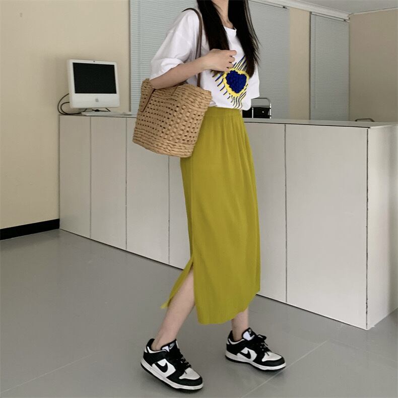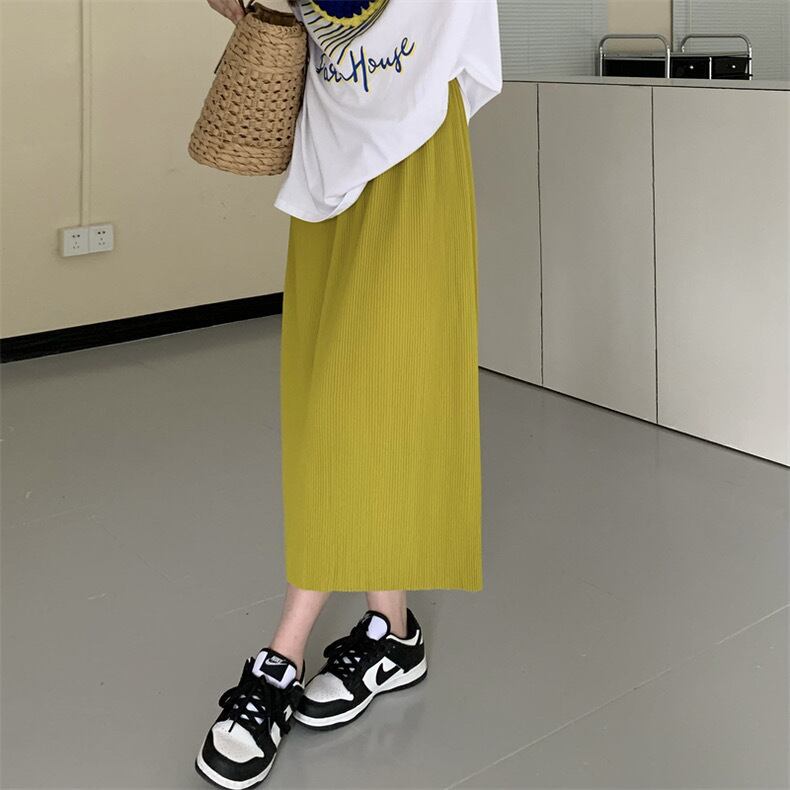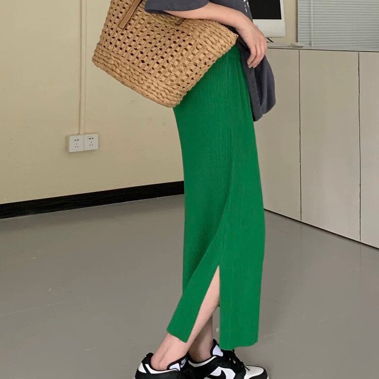 スカート ボトムス ロングスカート ミモレ丈 ロング丈 Aライン ハイウエスト ウエストゴム リブニット 無地 シンプル カジュアル おしゃれ お洒落 こなれ感 ラフ ルーズ 春 夏 秋 冬 10代 20代 30代 40代 レディース 女性用 ママ デート お出かけ 女子会 休日 ショッピング 公園 着回し 普段使い 韓国 韓国系 オルチャン ファッション コーデ スタイル 楽ちん 体系カバー 脚長 ワンホン 色展開 黒 ブラック 赤 レッド 青 ブルー 緑 グリーン 黄色 イエロー カラバリフリーサイズ