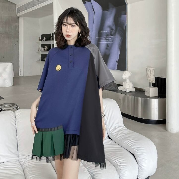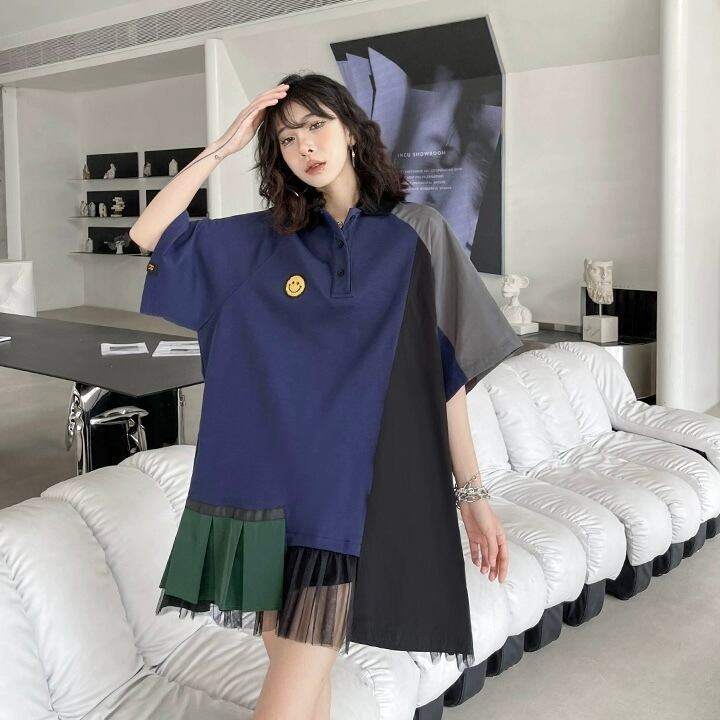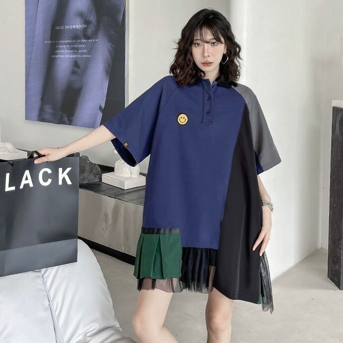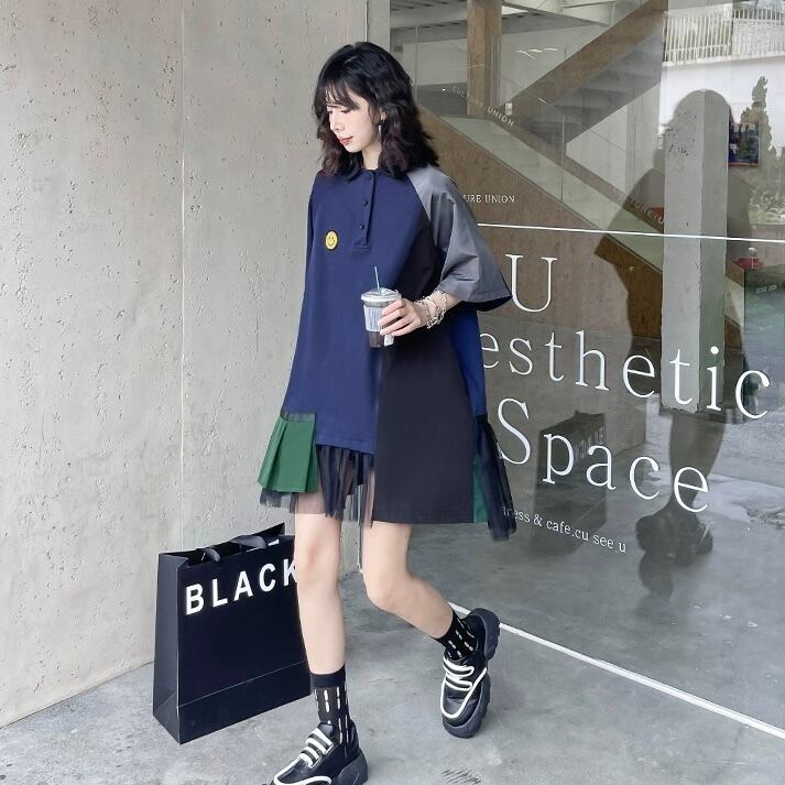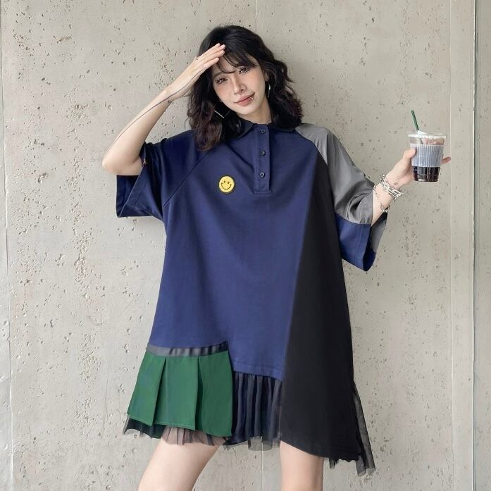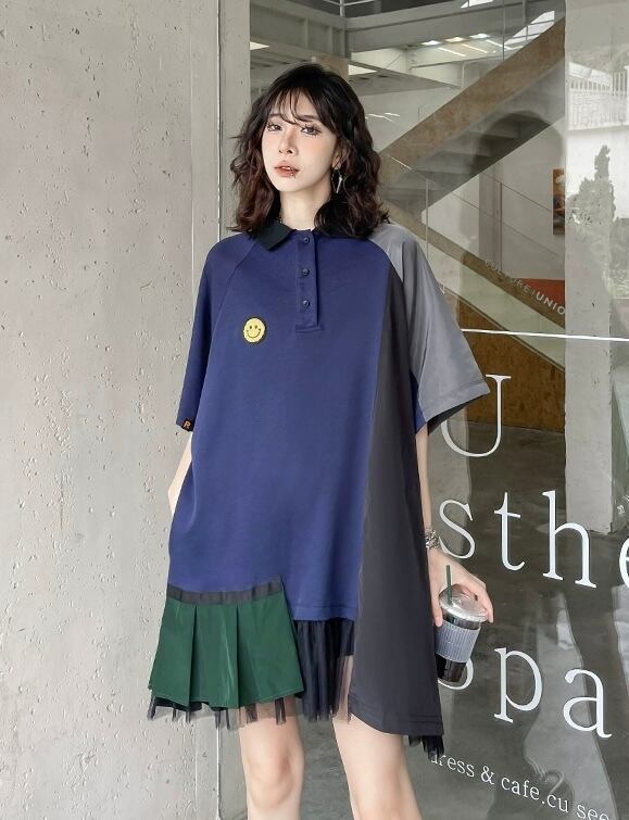 ワンピース シャツワンピース ショート丈 袖あり 半袖 襟付き ルーズ ポロカラー ストレート 切り替えデザイン 透け感 シースルー プルオーバー 薄手 大人可愛い きれいめ シンプル カジュアル 大人 上品 お洒落 かっこいい レトロ 大人女子 こなれ感 ラフ ラブリー キュート ガーリー 主役級 存在感 とろみ感 抜け感 春 10代 20代 レディース デート お出かけ 女子会 お泊まり 休日 アウトドア 普段使い 韓国 オルチャン モテ 美脚 脚長 トレンド 流行 インスタ映え ワンサイズ ネイビー
