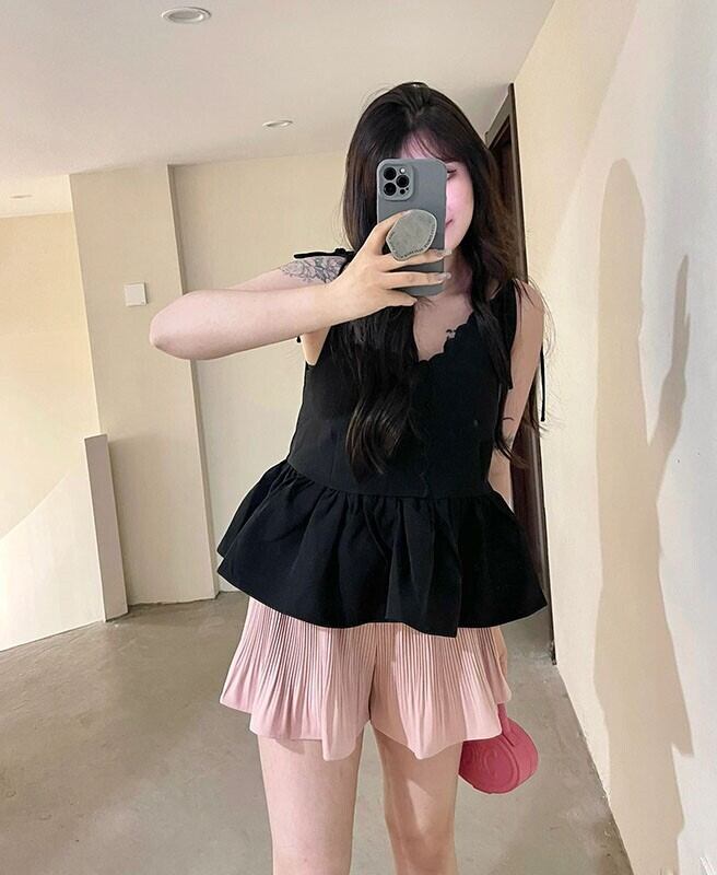 レディース トップス キャミソール ショート ノースリーブ Vネック フレア フェミニン ふんわり リボン かわいい 大人可愛い きれいめ シンプル カジュアル おしゃれ こなれ感 ラフ ガーリー 主役級 とろみ感 抜け感 ラブリー キュート ロマンティック ナチュラル 無地 夏 通勤 学生 通学 デート お出かけ パーティー イベント リゾート 旅行 女子会 ショッピング 重ね着 韓国 コーデ 楽ちん 体型カバー 普段使い 着回し モテ トレンド 流行 インスタ映え S M L XL ゆったり ブラック