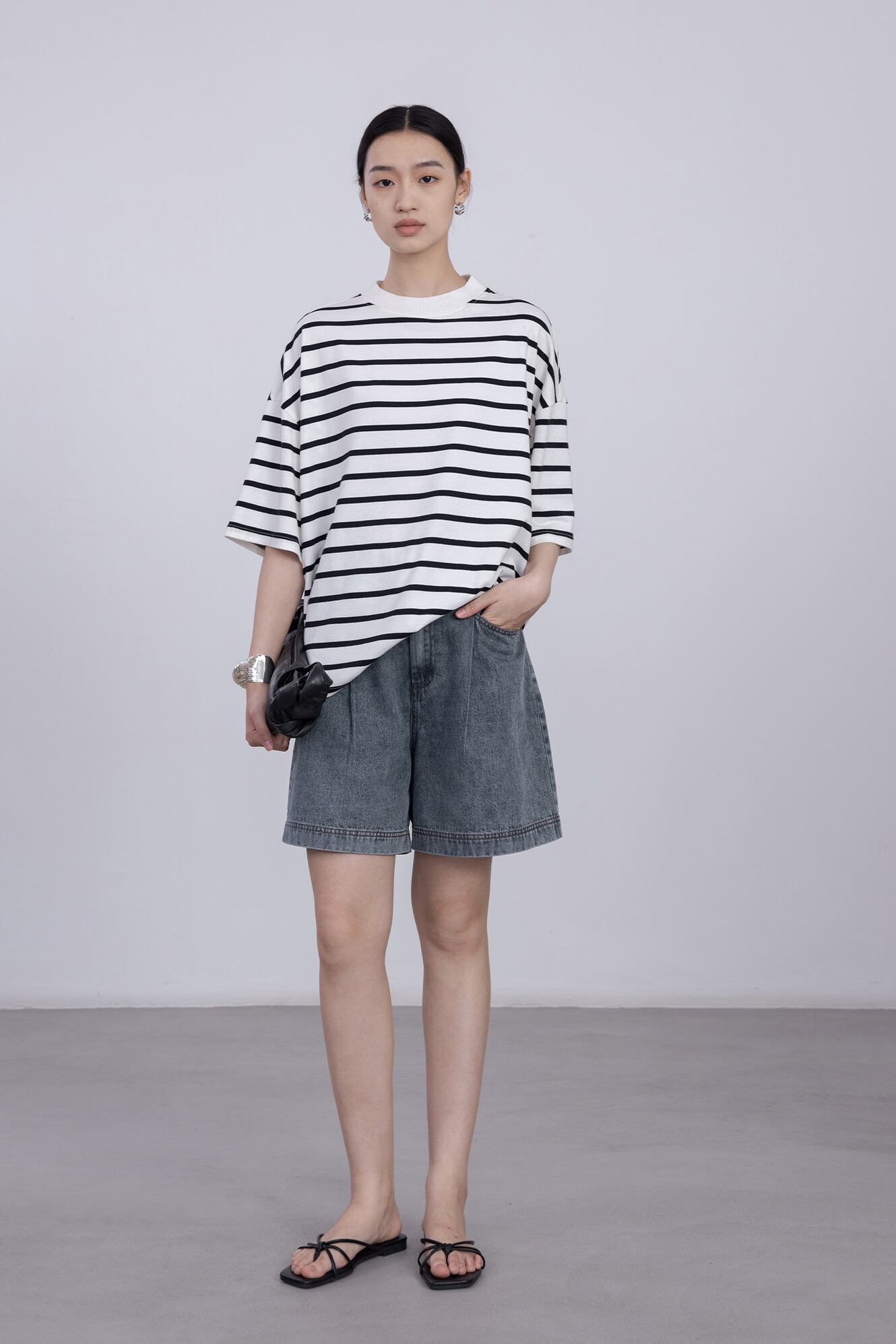 レディース トップス Tシャツ カットソー 白トップス ビッグT ショート ショート丈 袖あり 半袖 ラウンドネック セミフレア ワイド 綿 ポリエステル かわいい 大人可愛い きれいめ シンプル カジュアル おしゃれ 大人女子 こなれ感 ラフ メンズライク マニッシュ スポーティー ラブリー キュート ガーリー ルーズ 主役級 存在感 柄 ボーダー ストライプ 春 夏 10代 20代 30代 40代 オフィス 着回し 普段使い 重ね着 ファッション 楽ちん 体系カバー S M ゆる 白 ホワイト