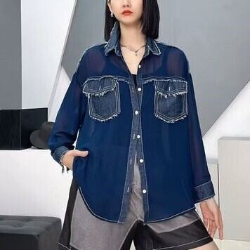 レディース トップス シャツ ブラウス 羽織 長袖 ポロカラー スリム ストレート ストリート シフォン ポケット シースルー ボタン デニム かわいい 大人可愛い きれいめ シンプル カジュアル おしゃれ かっこいい こなれ感 ラフ ガーリー 個性的 クール とろみ感 抜け感 無地 春 夏 通勤 学生 学校 デート お出かけ パーティー イベント リゾート 旅行 海 女子会 韓国 コーデ 楽ちん 体型カバー 普段使い 着回し モテ トレンド 流行 インスタ映え ゆったり フリーサイズ ブラック ブルー