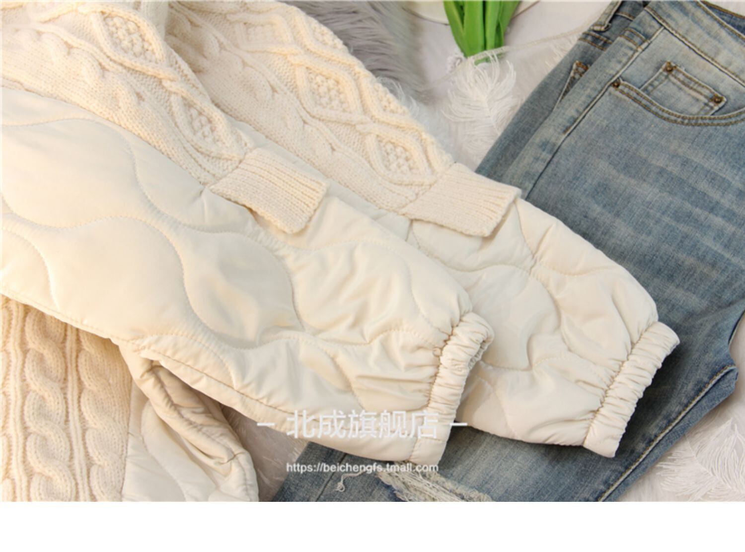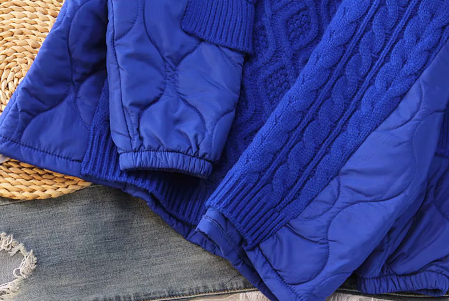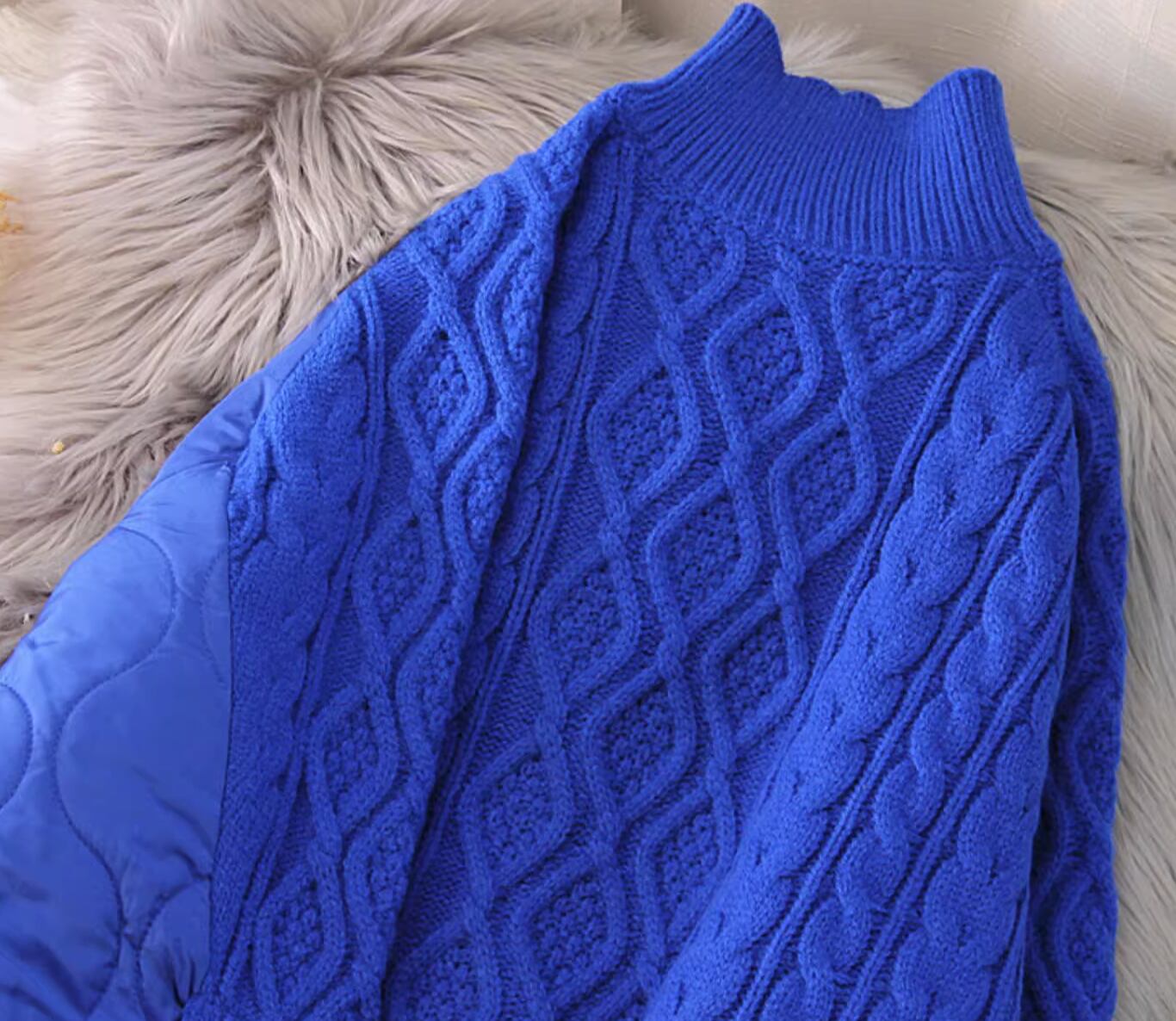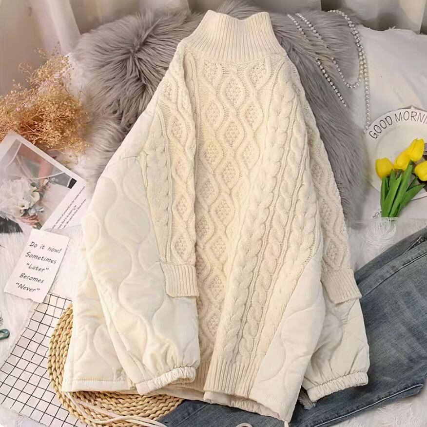 キルティングとの切り替えデザインが特徴のハイネックニットです。