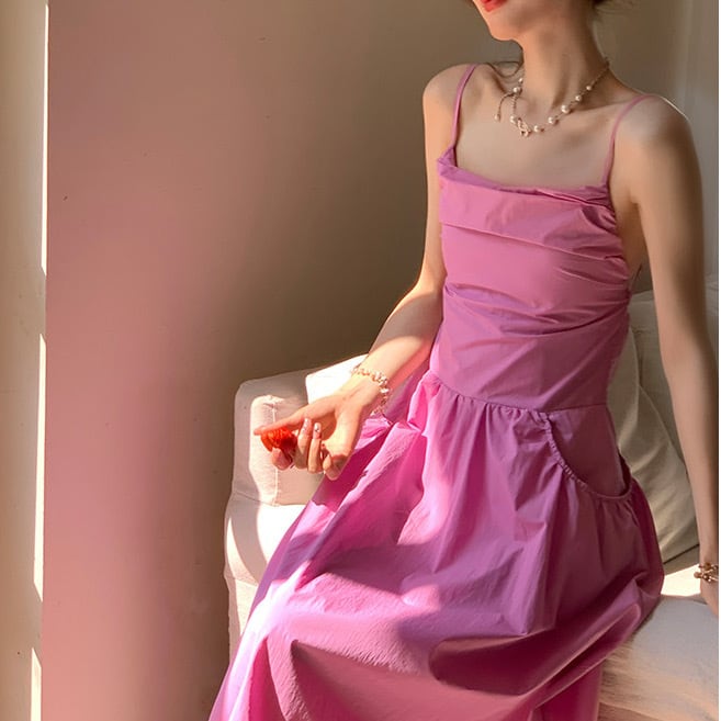 ワンピース キャミワンピ ワンピドレス ロング ロング丈 フレア リボン バックリボン ポケット 無地 かわいい シンプル おしゃれ お洒落 レトロ オトナ可愛い ラブリー キュート ガーリー 主役級 存在感 ドール ドーリー フェアリー フェミニン 春 夏 10代 20代 30代 レディース 女性用 デート お出かけ 女子会 休日 ショッピング 着回し 普段使い 韓国 韓国系 オルチャン ファッション コーデ スタイル モテ インスタ映え あざと可愛い ワンホン 色展開 ピンク サイズ展開 S M L