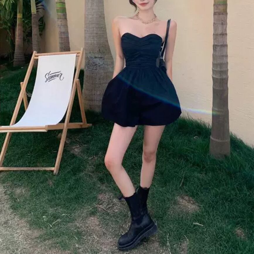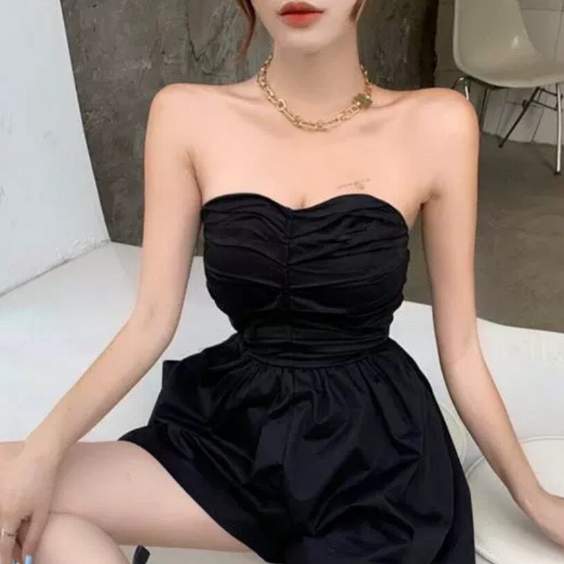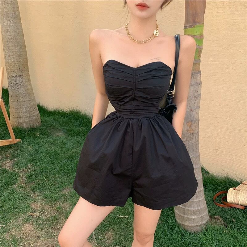 ワンピース オールインワン ワイドパンツ チューブトップ 袖なし ショート ショート丈 タイト ワイド ハイウエスト 無地 大人可愛い シンプル カジュアル おしゃれ お洒落 レトロ セクシー 春 夏 10代 20代 30代 レディース 女性用 デート お出かけ 女子会 休日 アウトドア イベント ショッピング 公園 着回し 普段使い お揃い 双子 韓国 韓国系 オルチャン ファッション コーデ スタイル 楽ちん モテ 美脚 脚長 インスタ映え 脚細見え 色展開 黒 ブラック カーキ サイズ S M L