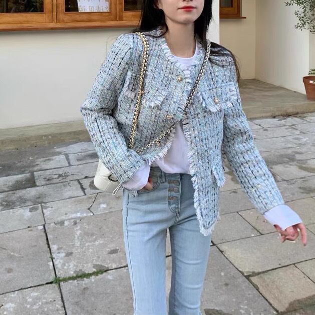 アウター ジャケット 上着 羽織り 長袖 襟なし スリム 刺繍 前開き 編み込み ボタン 柄 チェック柄 大人可愛い きれいめ 大人 上品 おしゃれ お洒落 レトロ オトナ可愛い 大人女子 キュート ガーリー エレガント フェアリー フェミニン 秋 冬 入学式 入園式 卒業式 卒園式 謝恩会 10代 20代 30代 40代 レディース 女性用 デート お出かけ 女子会 休日 ショッピング 着回し 普段使い 韓国 韓国系 オルチャン ファッション コーデ スタイル モテ 青 ブルーサイズ S M L XL