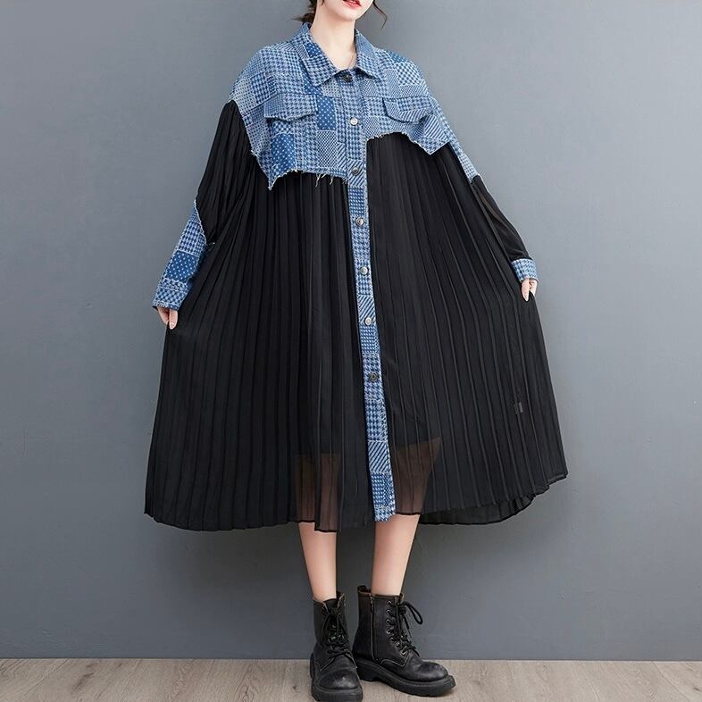 ワンピース シャツワンピース ミモレ丈 袖あり 長袖 襟付き ルーズ ポロカラー Aライン 切り替えデザイン ポケット 前開き 薄手 大人可愛い きれいめ シンプル カジュアル 大人 上品 お洒落 かっこいい レトロ 大人可愛い 大人女子 こなれ感 ラフ メンズライク マニッシュ ラブリー キュート 個性的 存在感 とろみ感 抜け感 チェック柄 春 10代 20代 レディース デート お出かけ 女子会 お泊まり 休日 普段使い 韓国系 オルチャン 楽ちん モテ トレンド 流行 ワンサイズ ブラック ブルー