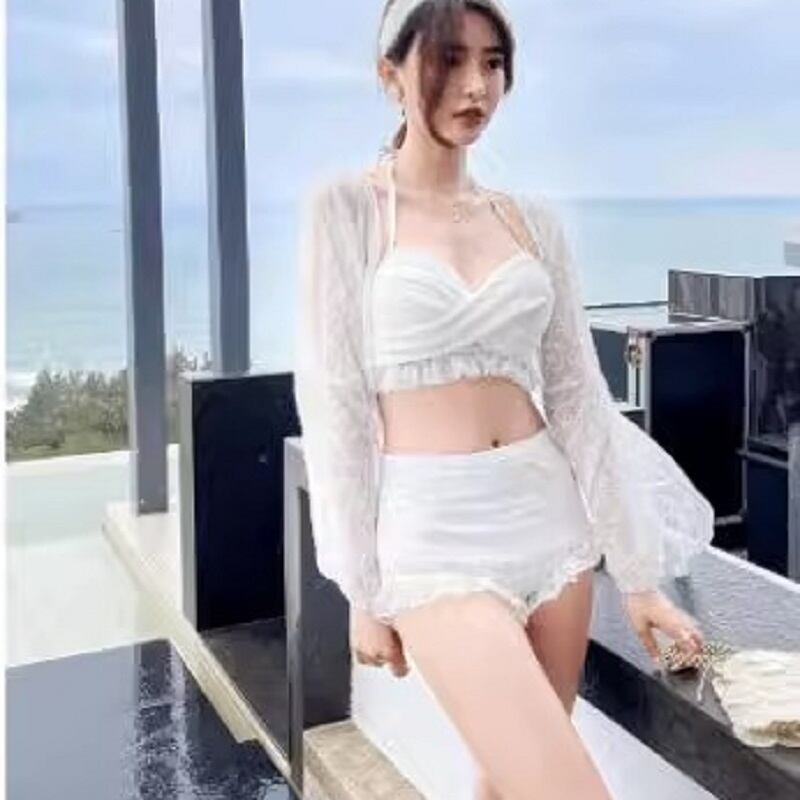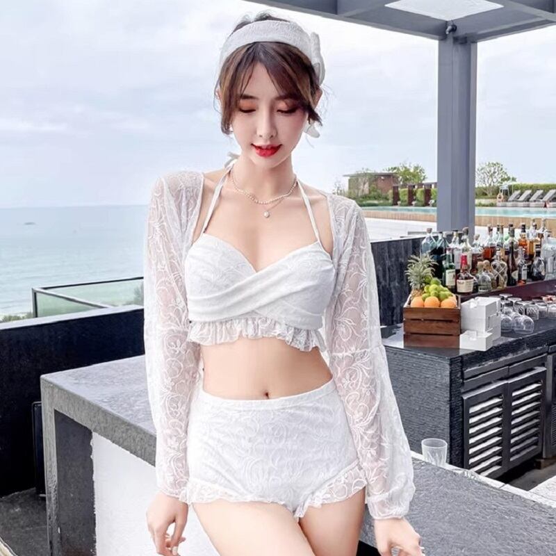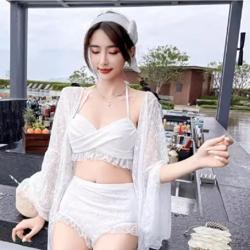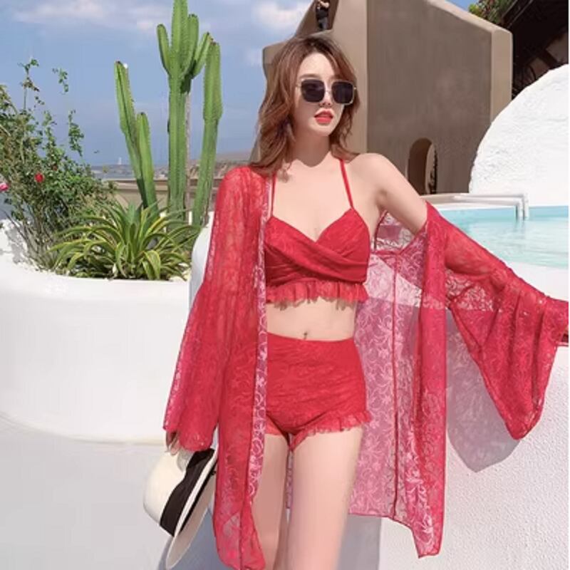 水着 ビキニ レディース 羽織り セパレート パッド付き レース フリル バックシャン ハイウエスト スリーピース かわいい 大人可愛い きれいめ カジュアル ナチュラル 華やか 大人っぽい おしゃれ お洒落 レトロ 存在感 ラブリー キュート 個性的 モダン メンズライク トレンド ベーシック フェミニン リゾート 旅行 プール 夏 海 美脚 脚長 着痩せ スタイルアップ 高見え 格上げ モテ 背中見せ スタイルカバー こなれ感 S M L XL ホワイト ブラック レッド ベージュ