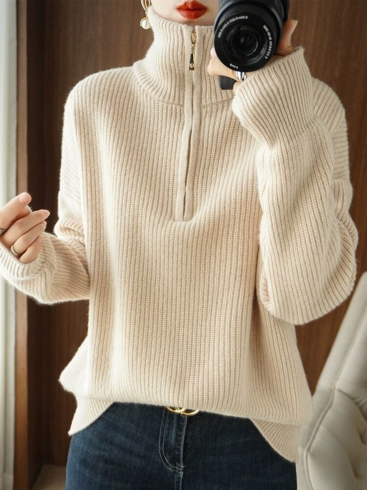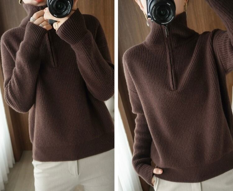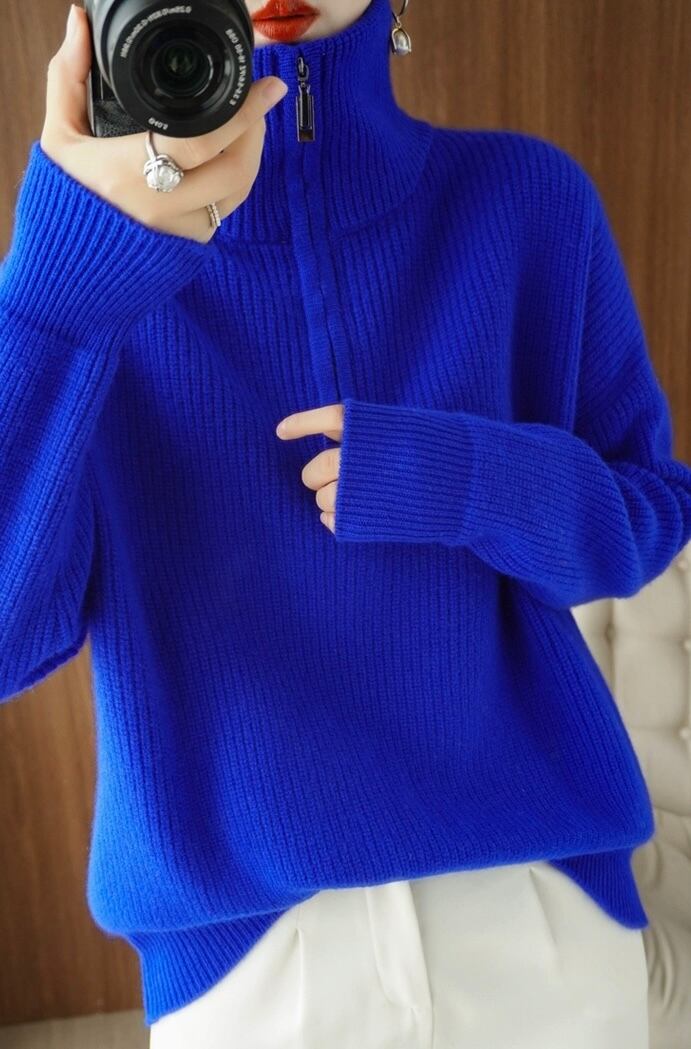 トップス セーター レギュラー丈 袖あり 長袖 タートルネック ルーズ もこもこ ファスナー プルオーバー ウール 厚手 大人可愛い きれいめ シンプル カジュアル 大人 上品 お洒落 かっこいい レトロ 大人可愛い 大人女子 こなれ感 ラフ ラブリー キュート モダン 主役級 存在感 とろみ感 抜け感 無地 冬 10代 20代 30代 40代 レディース デート お出かけ 女子会 休日 普段使い 韓国系 オルチャン モテ トレンド 流行 M L XL ブルー ブラウン グレー オフホワイト ネイビー