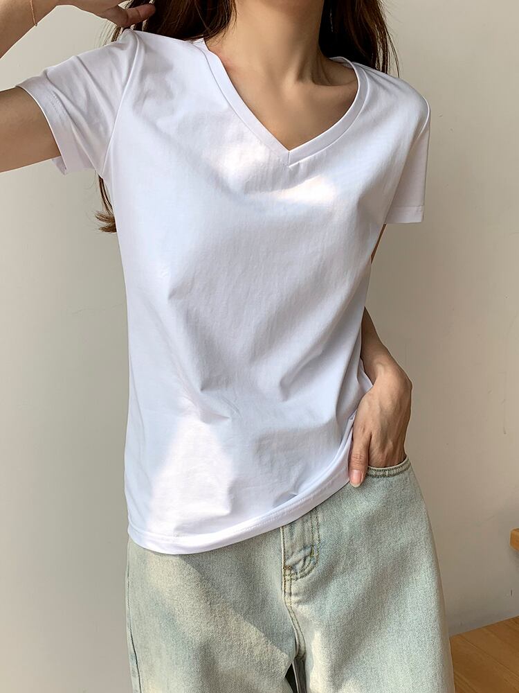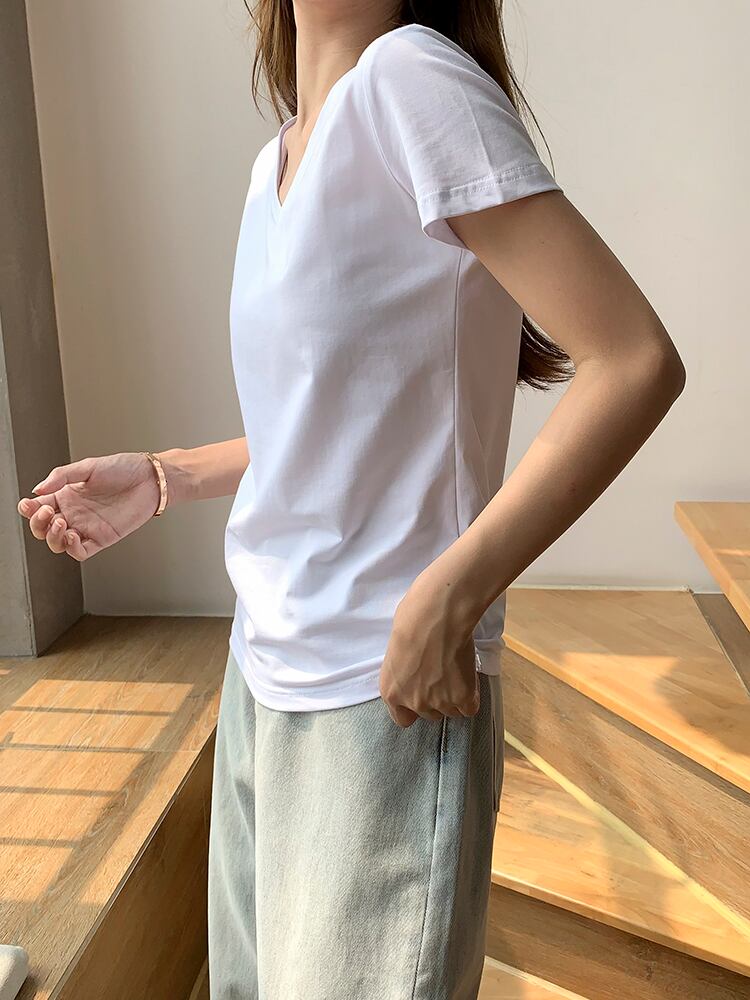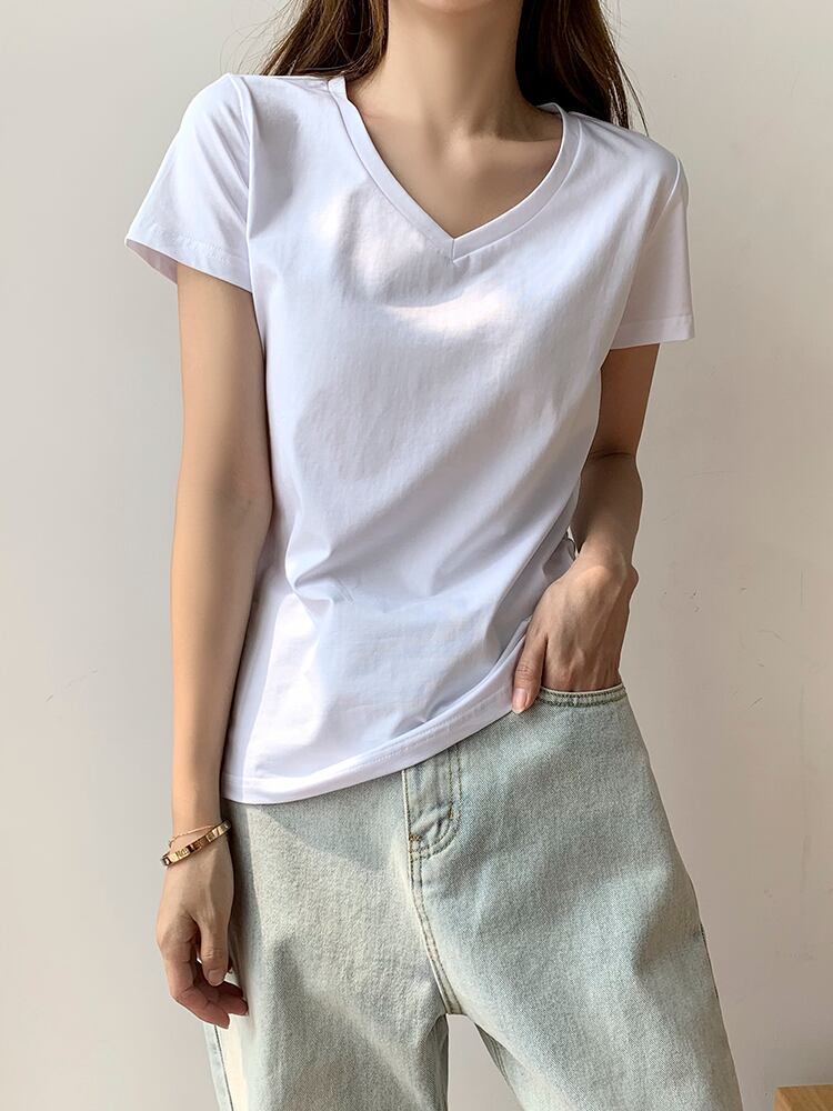 トップス Tシャツ ショート ショート丈 袖あり 半袖 Vネック ストレート 綿 大人可愛い きれいめ シンプル カジュアル 大人 おしゃれ お洒落 かっこいい レトロ 大人女子 こなれ感 抜け感 フェミニン シック 大人カジュアル 無地 夏 10代 20代 30代 40代 0 オフィス OL 通勤 学生 通学 デート 女子会 お泊まり 休日 運動 ヨガ アウトドア イベント 旅行 着回し 普段使い ファッション コーデ スタイル 楽ちん S M L XL ホワイト