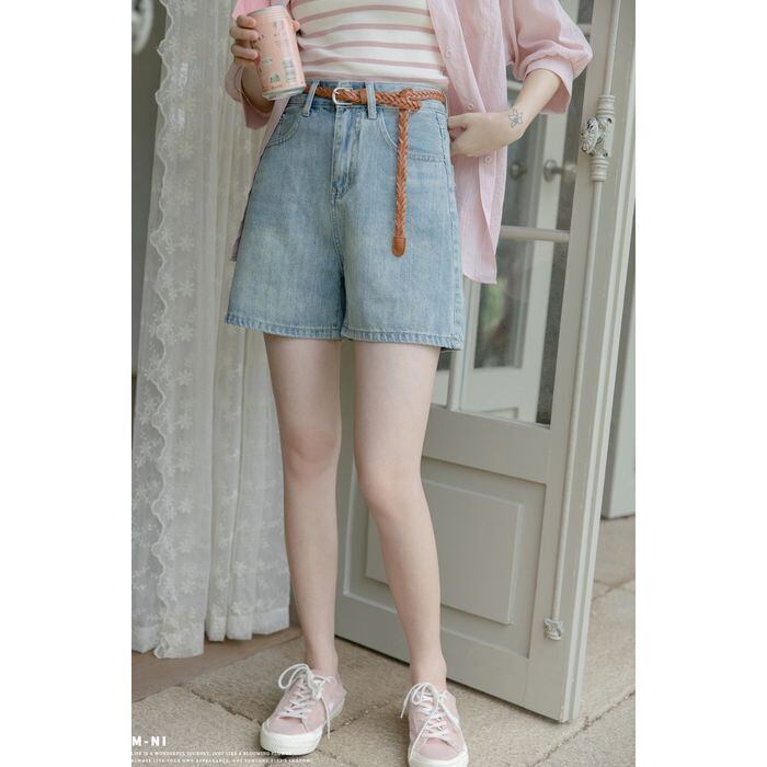 ボトムス ショートパンツ ショート丈 デニム ベルト付 かわいい シンプル カジュアル おしゃれ お洒落 かっこいい ラフ スポーティー ラブリー キュート クール 春 夏 10代 20代 レディース 女の子 学生 デート お出かけ 女子会 休日 アウトドア 海 韓国 モテ 美脚 トレンド ブルー S M L XL