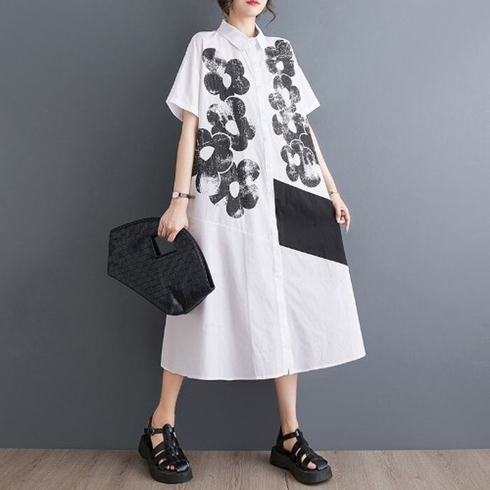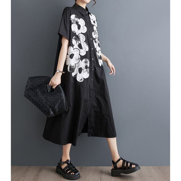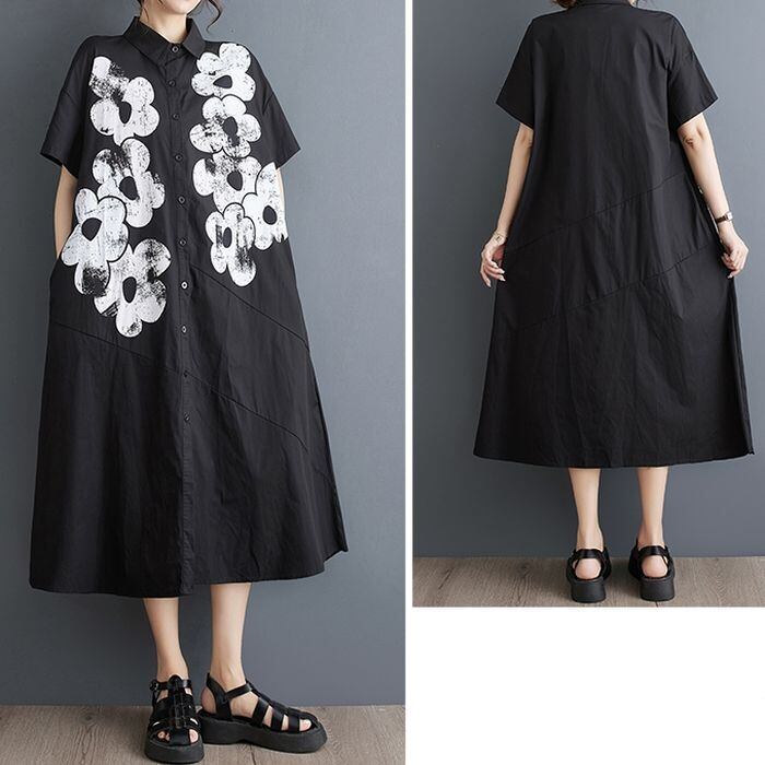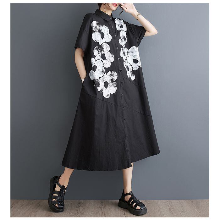 レディース ワンピース シャツワンピ ロング 半袖 襟付き ワイド Aライン 薄手 花柄 かわいい 大人可愛い きれいめ カジュアル おしゃれ こなれ感 ラフ 個性的 とろみ感 抜け感 ラブリー キュート 無地 春 夏 秋 OL 学生 学校 通学 デート お出かけ お泊まり イベント リゾート 旅行 海 公園 女子会 休日 バカンス ホテル ガーデン ショッピング ライブ 合コン 重ね着 コーデ プレゼント 普段使い 着回し インスタ映え フリーサイズ ホワイト ブラック